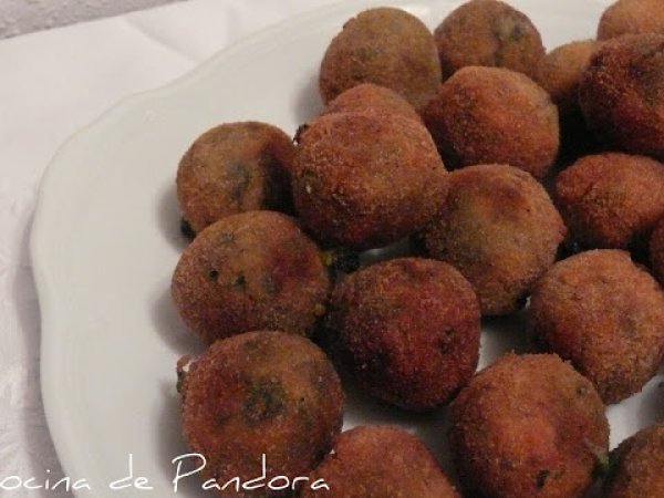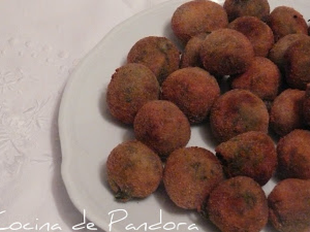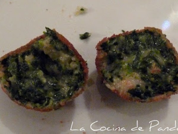 Bolitas de espinacas y gambas AnteriorSiguiente AperitivoFácil1 h 10 m Enviar esta receta a un amigo Imprimir esta página Preguntar al autor Publicar la foto de esta receta Ingredientes 4 2 dientes de ajo 1 cebolla no muy grande 1 bolsa de espinacas 1 bolsita de gambas congeladas peladas de unos 200-250 gr 2 o 3 cucharadas de harina leche sal para empanar: harina huevo pan rallado aceite de oliva (para freír)