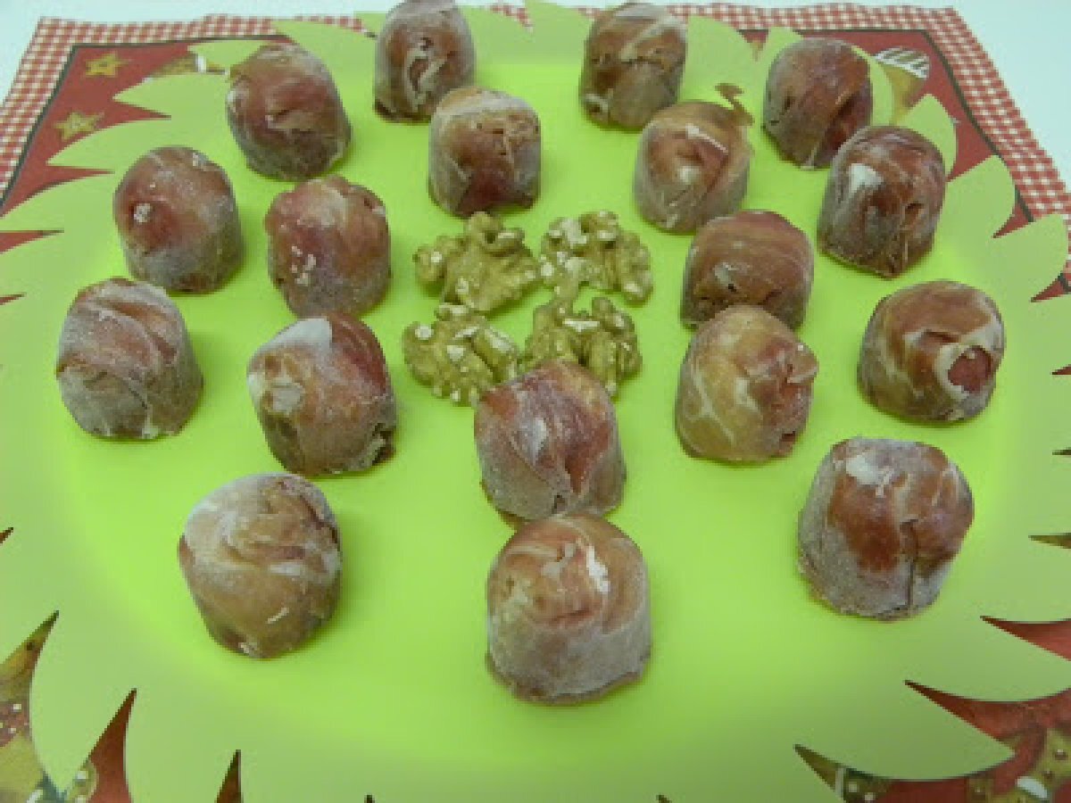 Bombones de jamón AperitivoFácil55 min Enviar esta receta a un amigo Imprimir esta página Preguntar al autor Publicar la foto de esta receta Ingredientes 8 Jamón serrano en lonchas finas Una tarrina de queso philadelphia finas hierbas Dátiles Una tarrina philadelphia de queso azul Nueces Costo estimado: 2.66Euros€ (0.33€/porción)