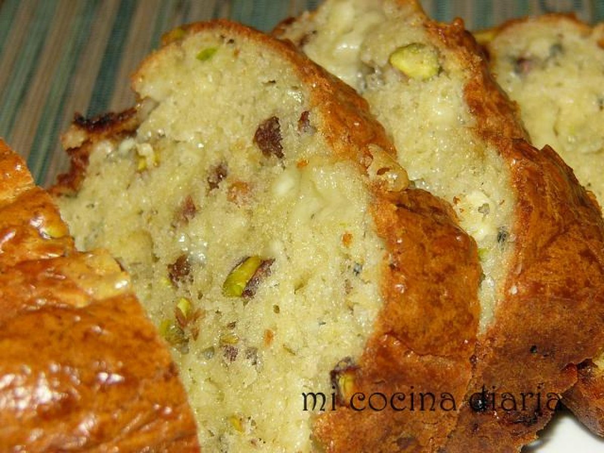 Cake de queso roquefort, uvas pasas y pistachos AnteriorSiguiente AperitivoFácil1 h 5 m Enviar esta receta a un amigo Imprimir esta página Preguntar al autor Publicar la foto de esta receta Ingredientes 6 3 huevos sal y pimienta 180 g de harina 1 sobre de levadura 100 ml de aceite de girasol 100 ml de leche 200 g de queso Roquefort cortado en daditos 150 g de queso Gruyere rallado 100 g de uvas pasas 50 g de pistachos Costo estimado: 6.22Euros€ (1.04€/porción)