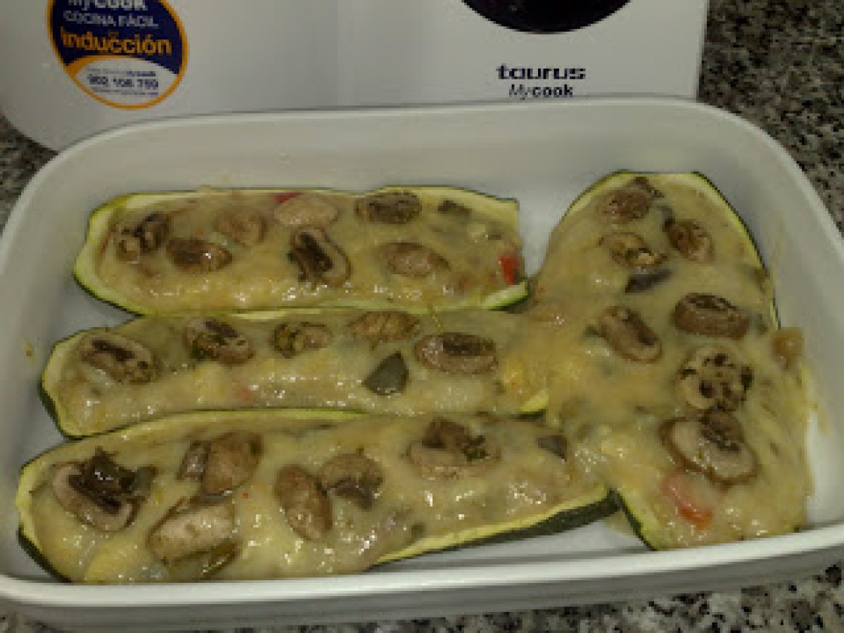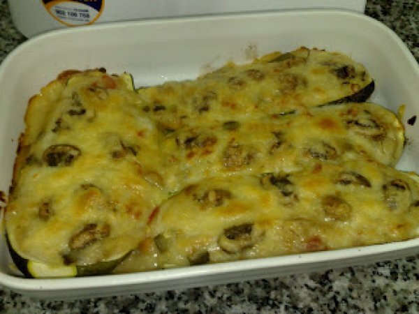 Calabacin relleno de verduras asadas AnteriorSiguiente AperitivoFácil50 min Enviar esta receta a un amigo Imprimir esta página Preguntar al autor Publicar la foto de esta receta Una nueva receta deliciosa, no se puede perder. Ingredientes 3 2 calabacines 300 g de verduras asadas ( cebolla, calabacin, pimiento rojo y verde) 5 champiñosnes fritos 40 g de harina 300 ml de leche desnatada ó entera nuez moscada al gusto pimienta al gusto sal queso rallado