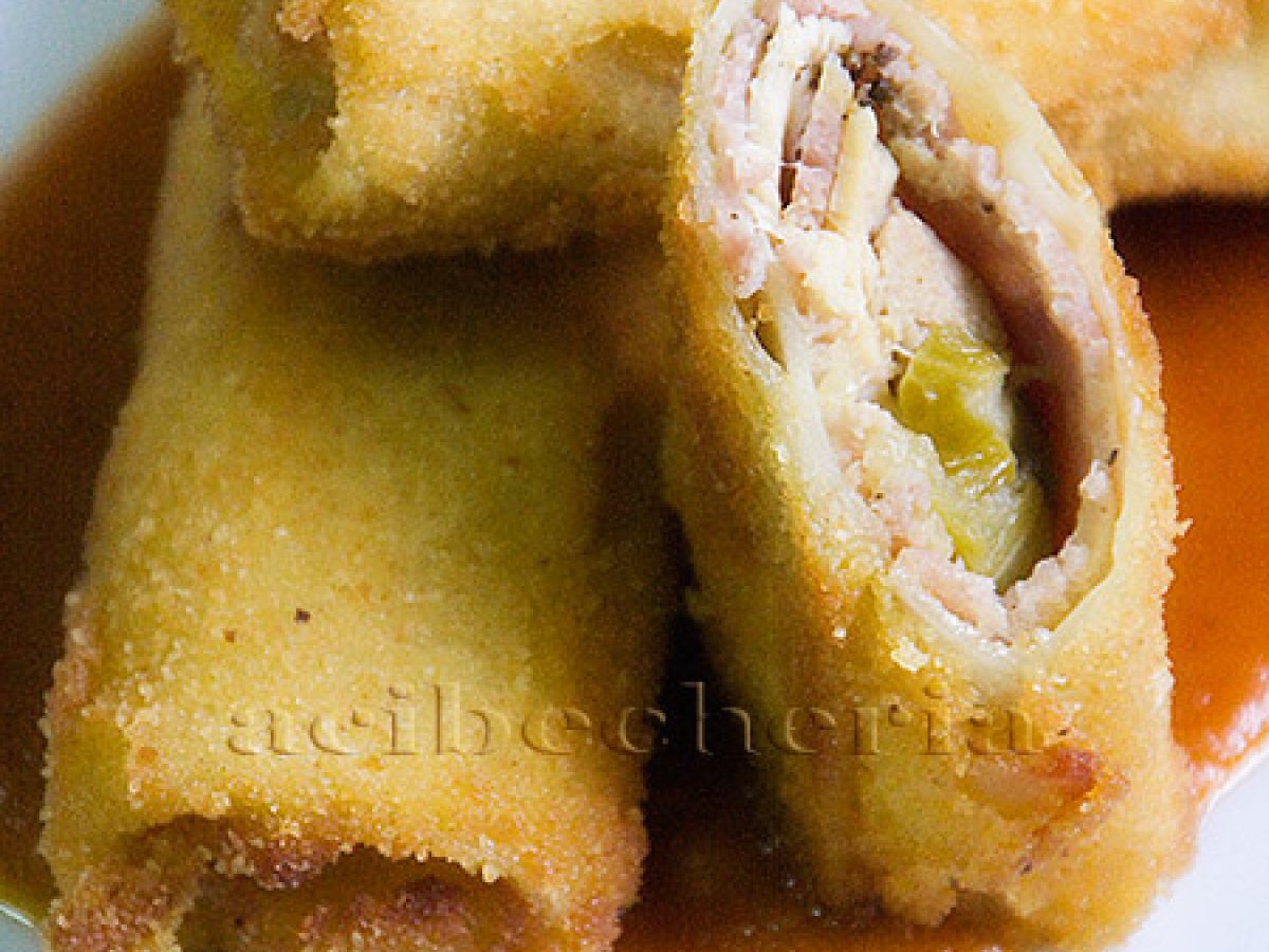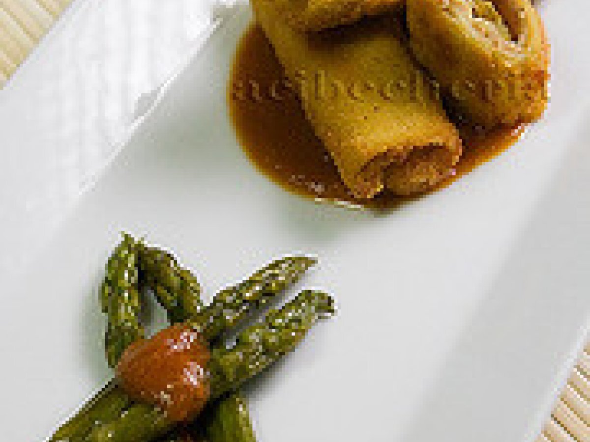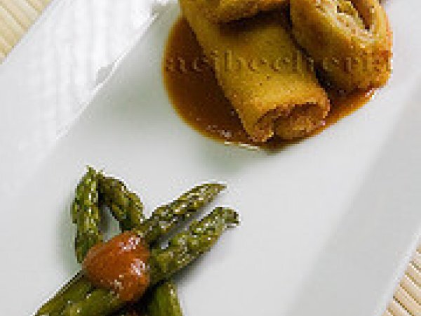 Canelones de gallina trufada AnteriorSiguiente AperitivoFácil1 h 5 m Enviar esta receta a un amigo Imprimir esta página Preguntar al autor Publicar la foto de esta receta Ingredientes 3 12 placas de pasta para canelón 12 rodajas de fiambre de gallina 1 calabacín 1 manzana estarky 10 espárragos verdes Micuit Pasta de trufa Huevo y pan rallado para el rebozado