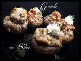 - Rellenar los champiñones con la mezcla. Ayúdate de una cucharilla.