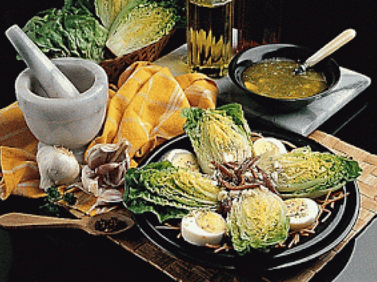 - Distribuya los trozos de lechuga sobre cuatro platos individuales y riéguelos con el compuesto recién preparado; adorne con el huevo duro, cortado en rodajitas finas, y las anchoas restantes y sirva.