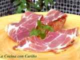 En un bol mezcla la crema queso con 5 lonchas de lomo (picadas) + chalota picada + albahaca picada + piñones. Salpimenta.