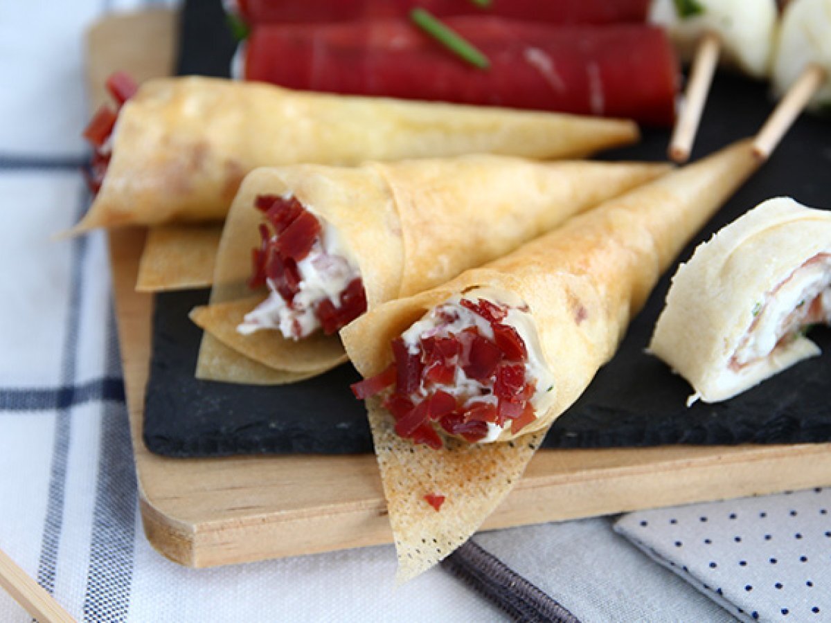 Y si le damos una forma más original a las hojas de masa brick para el aperitivo? Preséntalos en forma de conos! Rellena con una mezcla de queso crema y éxito asegurado :) Una receta fácil que irá maravillosamente con crujiente y fondant. ¿Has estado haciendo agua la boca? Solo tienes que seguir paso a paso nuestra receta disponible en versión escrita y vídeo ;)