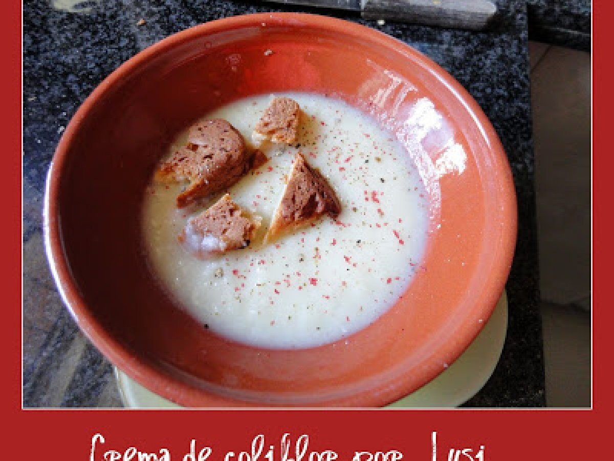Crema de coliflor al ajo asado AnteriorSiguiente AperitivoFácil15 min502 Kcal Enviar esta receta a un amigo Imprimir esta página Preguntar al autor Publicar la foto de esta receta Ingredientes 1 1 coliflor pequeña 1 vaso medidor de agua 1 vaso medidor de leche Sal y pimienta 1/2 cabeza de ajo asado o frita Aceite y cominos Costo estimado: 2.62Euros€ (2.62€/porción)