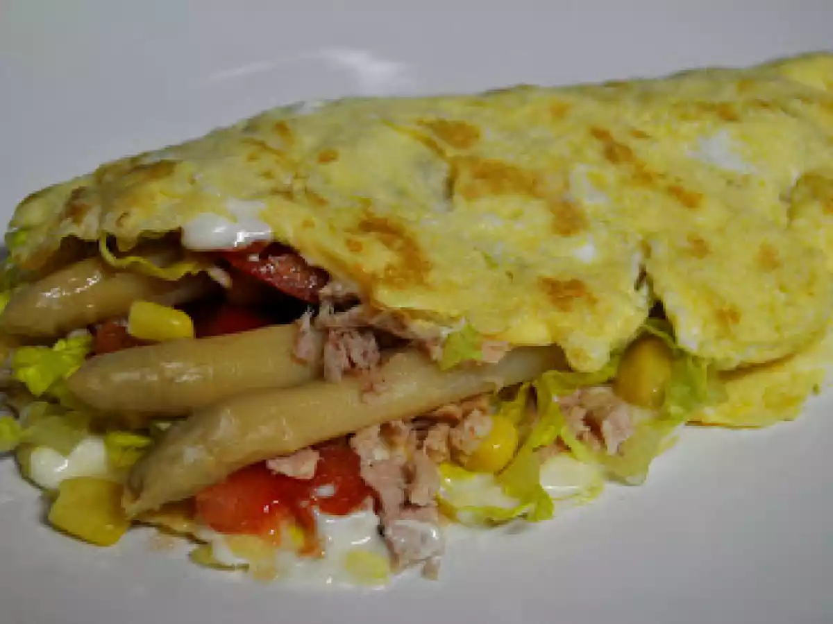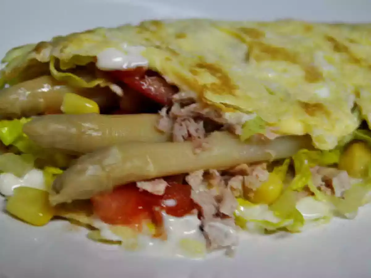Crepe de tortilla relleno AnteriorSiguiente AperitivoFácil20 min235 Kcal Enviar esta receta a un amigo Imprimir esta página Preguntar al autor Publicar la foto de esta receta Eta recetta es fácil, fácil. Ingredientes 2 Crepe De Tortilla Relleno 1 Huevo Xl 3 Espárragos Blancos 1/2 Tomate Picado 1/2 lata De Atún 1 Cucharada De Mayonesa Ligeresa Lechuga Bien Picada Maíz Dulce