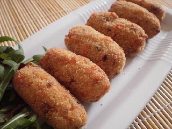 Croquetas de arroz y marisco AperitivoFácil35 min97 Kcal Enviar esta receta a un amigo Imprimir esta página Preguntar al autor Publicar la foto de esta receta Ingredientes 4 arroz aceite cebolla langostinos una cucharadita pequeña de jengibre en polvo soja perejil Costo estimado: 1.12Euros€ (0.28€/porción)