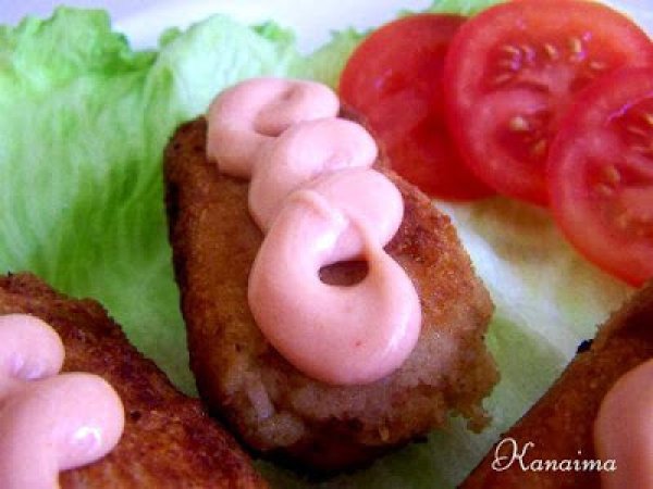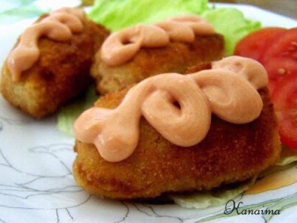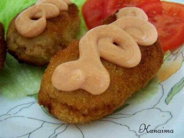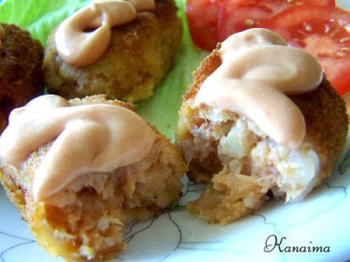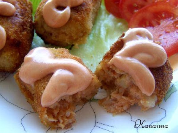 Croquetas de atún, papas y arroz AnteriorSiguiente AperitivoFácil50 min417 Kcal Enviar esta receta a un amigo Imprimir esta página Preguntar al autor Publicar la foto de esta receta Ingredientes 3 atún de lata papas cocinadas arroz blanco salsa Ketchup cebolla picadita sal pimienta 1 huevo batido para empanar pan rallado aceite para freir Costo estimado: 2.25Euros€ (0.75€/porción)