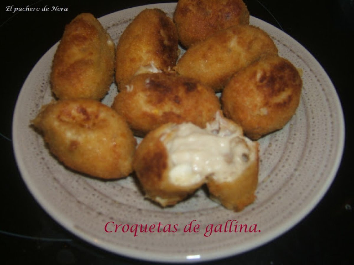 Croquetas de gallina: las croquetas de mi madre. AperitivoFácil1 h 5 m296 Kcal Enviar esta receta a un amigo Imprimir esta página Preguntar al autor Publicar la foto de esta receta Ingredientes 6 1 muslo de gallina 1 cucharada sopera de mantequilla 2 cucharadas de aceite 2 cucharadas de harina 1 pizca de levadura 3/4 l de leche Pan rallado en el momento 2 huevos Aceite de oliva o girasol para freír Costo estimado: 1.65Euros€ (0.28€/porción)