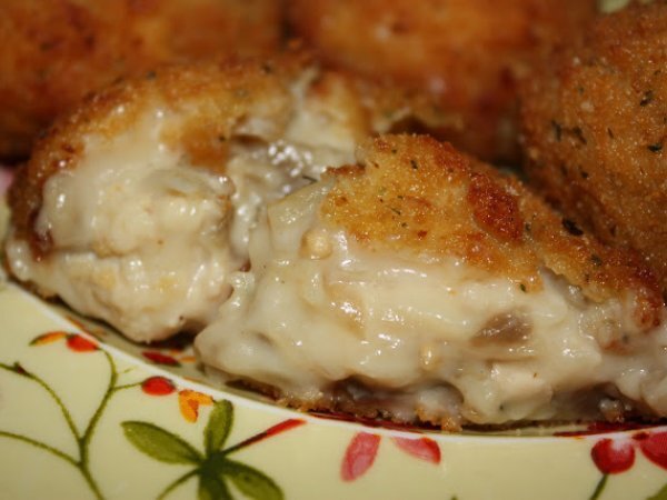 Croquetas de pollo y berenjena AnteriorSiguiente AperitivoFácil1 hora Enviar esta receta a un amigo Imprimir esta página Preguntar al autor Publicar la foto de esta receta Ingredientes 8 2 pechugas medianas 1 berenjena grande 1 cebolla 2 dientes de ajo o 1 grande 1 chorro de vino blanco 1 l leche 4 cucharadas colmadas de harina u 8 rasas sal, pimienta y nuez moscada