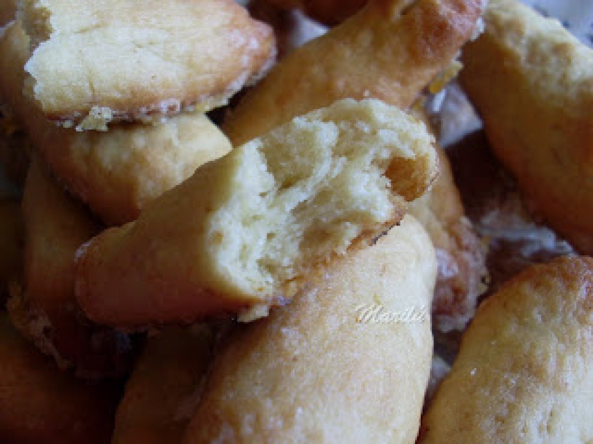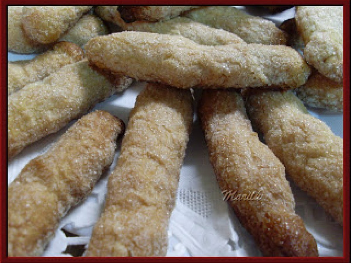 - Vamos coiendo pedacitos de masa y hacemos bastoncitos del tamaño y grosor de un dedo,los pasamos por azucar hasta impregnarlos bien.