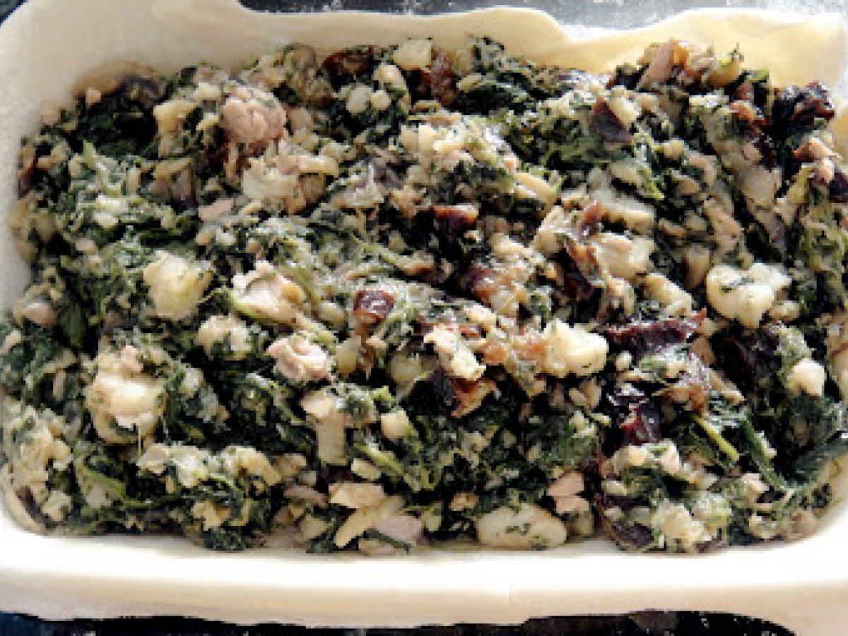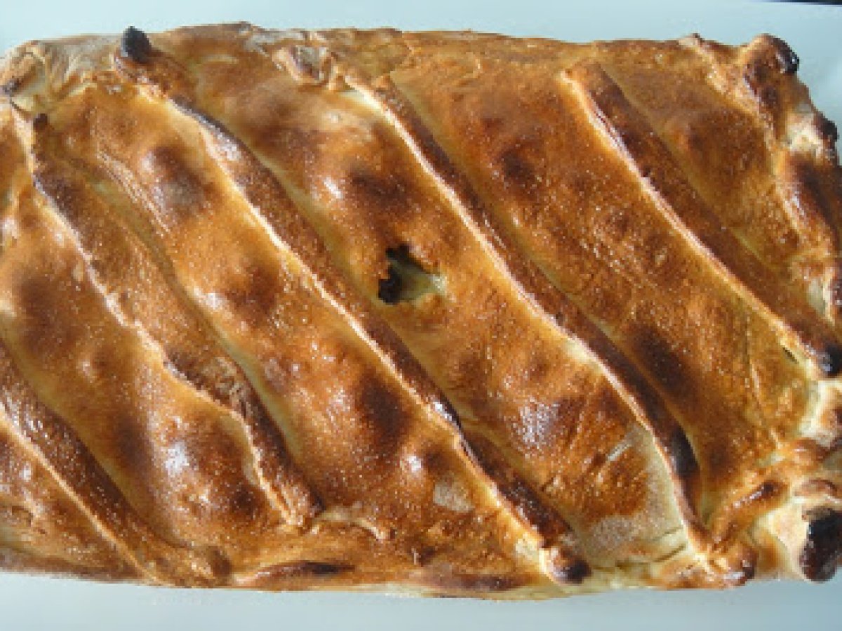 Empanada de bacalao con espinacas y ciruelas (con masa casera) AnteriorSiguiente AperitivoFácil40 min Enviar esta receta a un amigo Imprimir esta página Preguntar al autor Publicar la foto de esta receta Ingredientes 4 (para la masa): 400 g de harina de fuerza 200 g de harina normal 200 ml de agua 100 ml de vino blanco 50 ml de aceite de oliva 1 huevo + 1 huevo para pintar la masa 30 g de manteca de cerdo 25 g de levadura fresca de panadería 1 cdta de azúcar 2 cdtas de sal (para el relleno): 6 lomos de bacalao (congelado y en su punto de sal) 2 latas pequeñas de atún 300 g de espinacas cocidas 1 berenjena pequeña 2 cebollas 7 u 8 champiñones ciruelas sin hueso