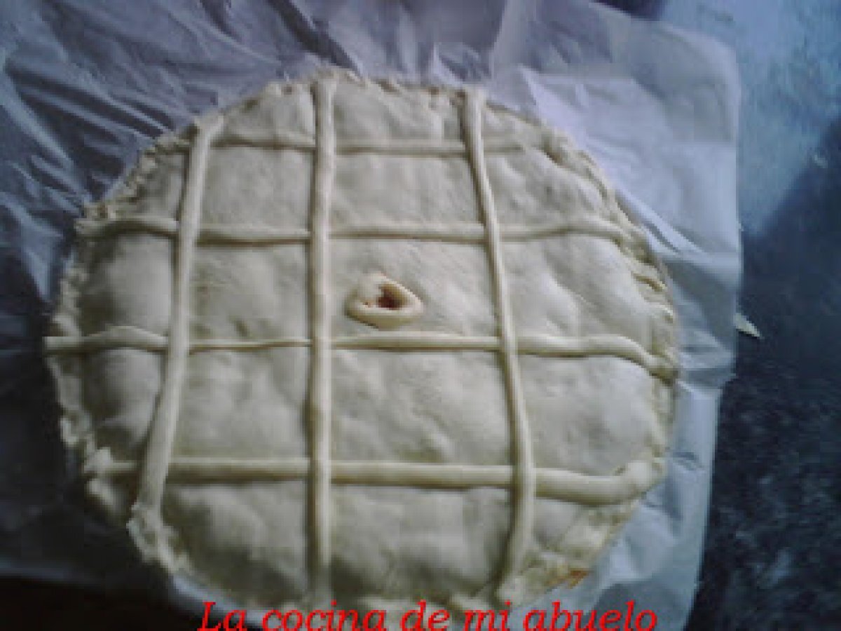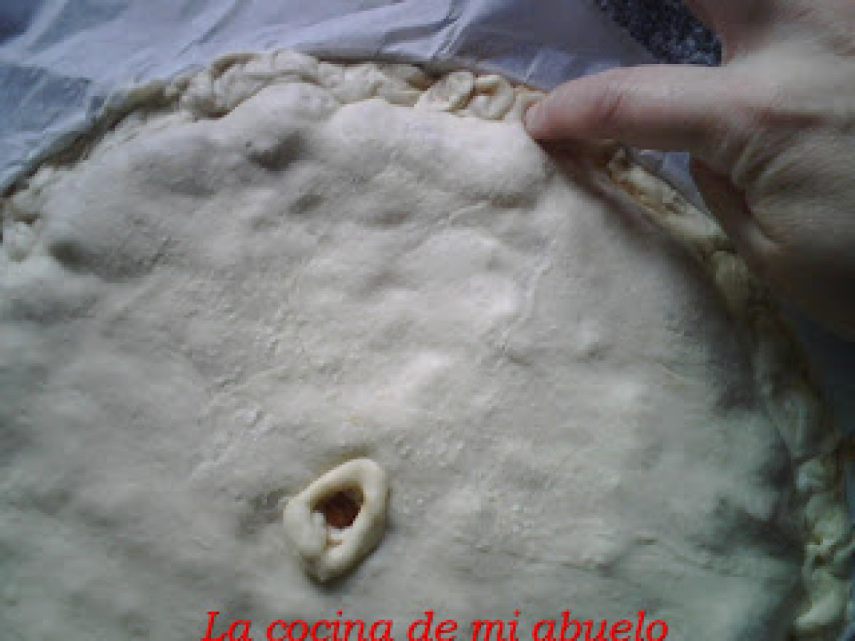Empanada de zorza. AnteriorSiguiente AperitivoFácil1 hora Enviar esta receta a un amigo Imprimir esta página Preguntar al autor Publicar la foto de esta receta Ingredientes 4 Para la masa: 1/4 litro de agua templada un pizca de levadura fresca 1 huevo 1/2 kg de harina aprox. 1 pizca de sal. Para el relleno: Zorza 2 cebollas 1 pimiento rojo 2 ajos 1 hoja de laurel 1/2 copa de vino blanco sal aceite.