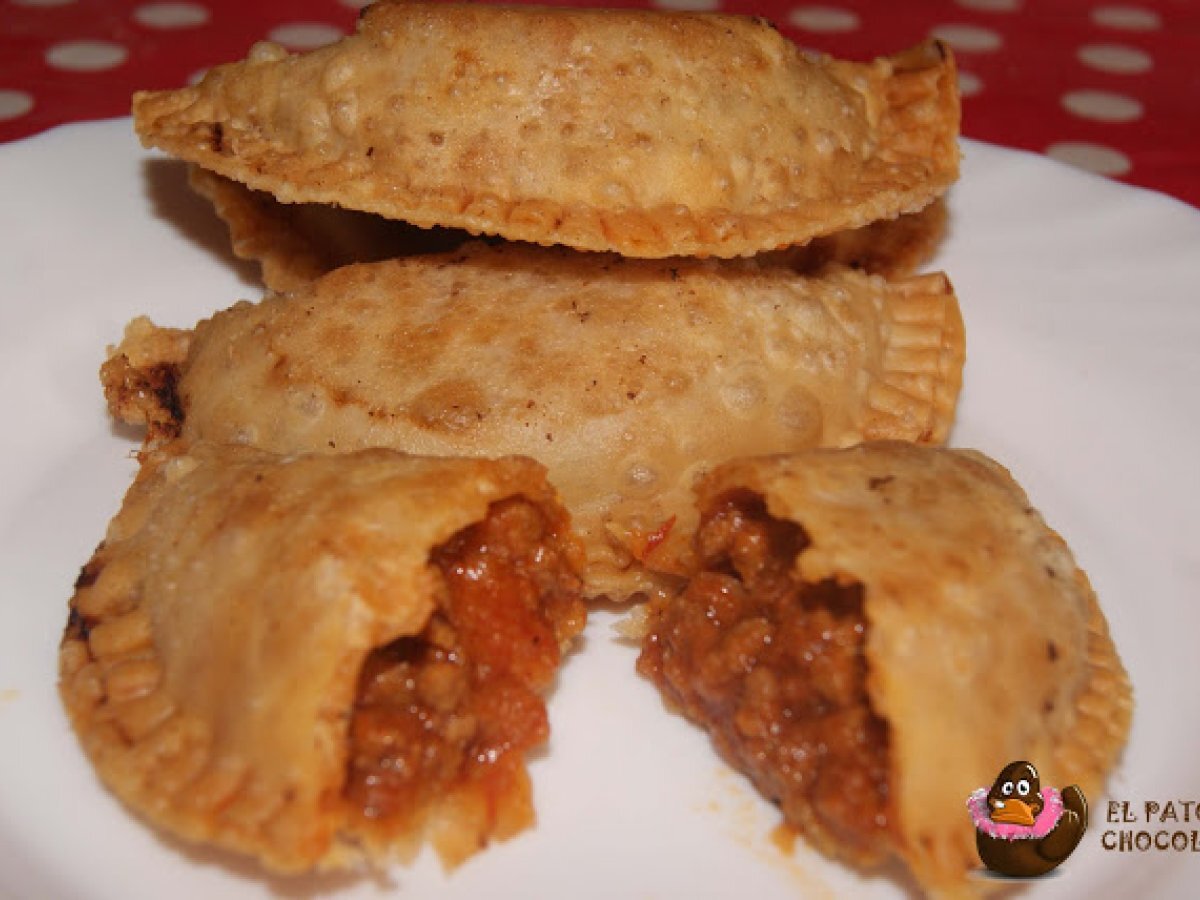 Empanadillas de carne AperitivoMedio50 min Enviar esta receta a un amigo Imprimir esta página Preguntar al autor Publicar la foto de esta receta Ingredientes 4 250 g. de carne picada de ternera 3 salchichas de Frankfurt 16 obleas para empanadillas 1 cebolla 1 pimiento 1 vaso de vino blanco 1 vaso de agua Pimienta Sal