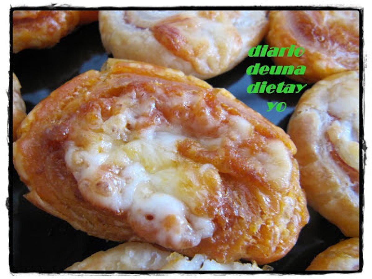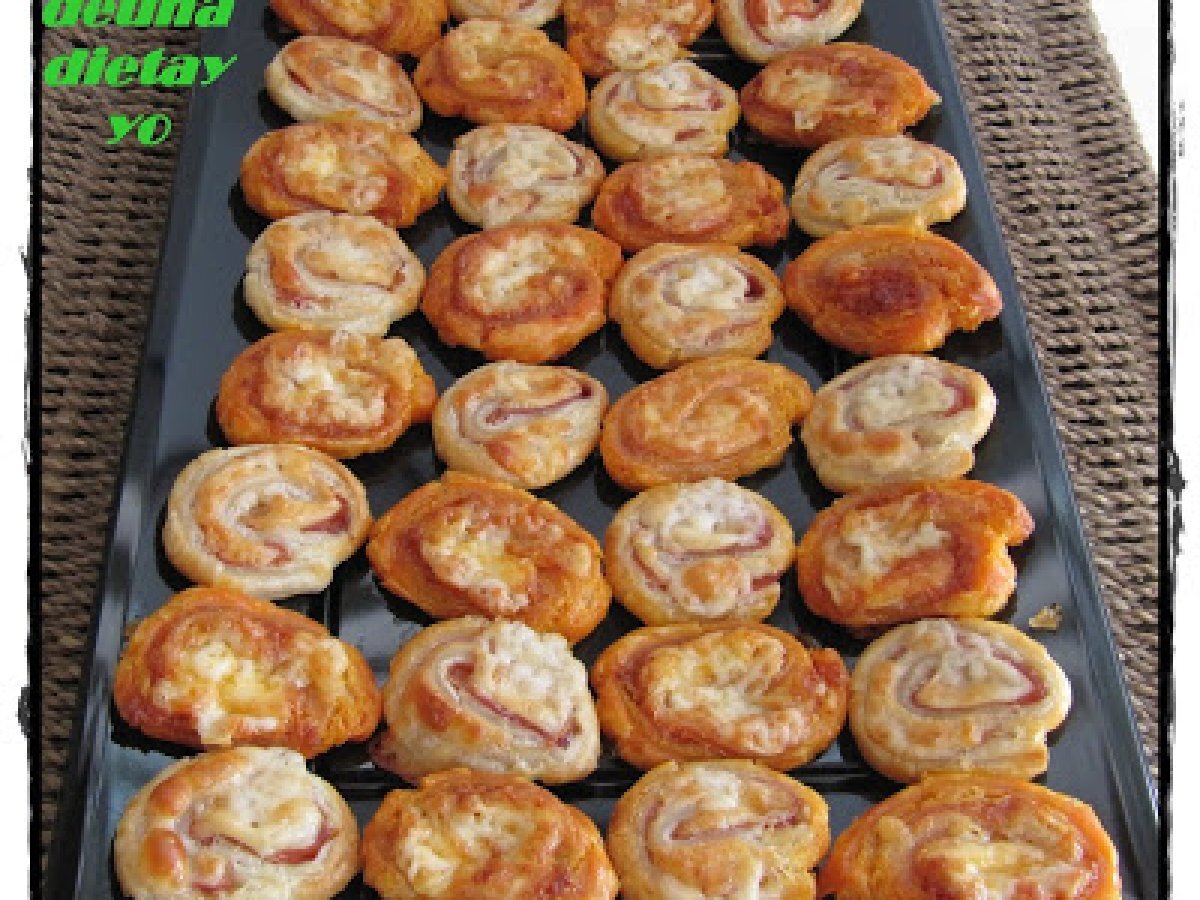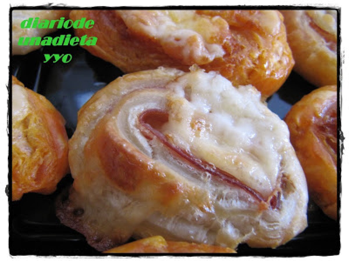 Enrollados de jamón/queso y sobrasada/queso AnteriorSiguiente AperitivoFácil30 min Enviar esta receta a un amigo Imprimir esta página Preguntar al autor Publicar la foto de esta receta Ingredientes 2 hojaldre lonchas de jamón salado lonchas de queso de cabra sobrasada ibérica 1 huevo