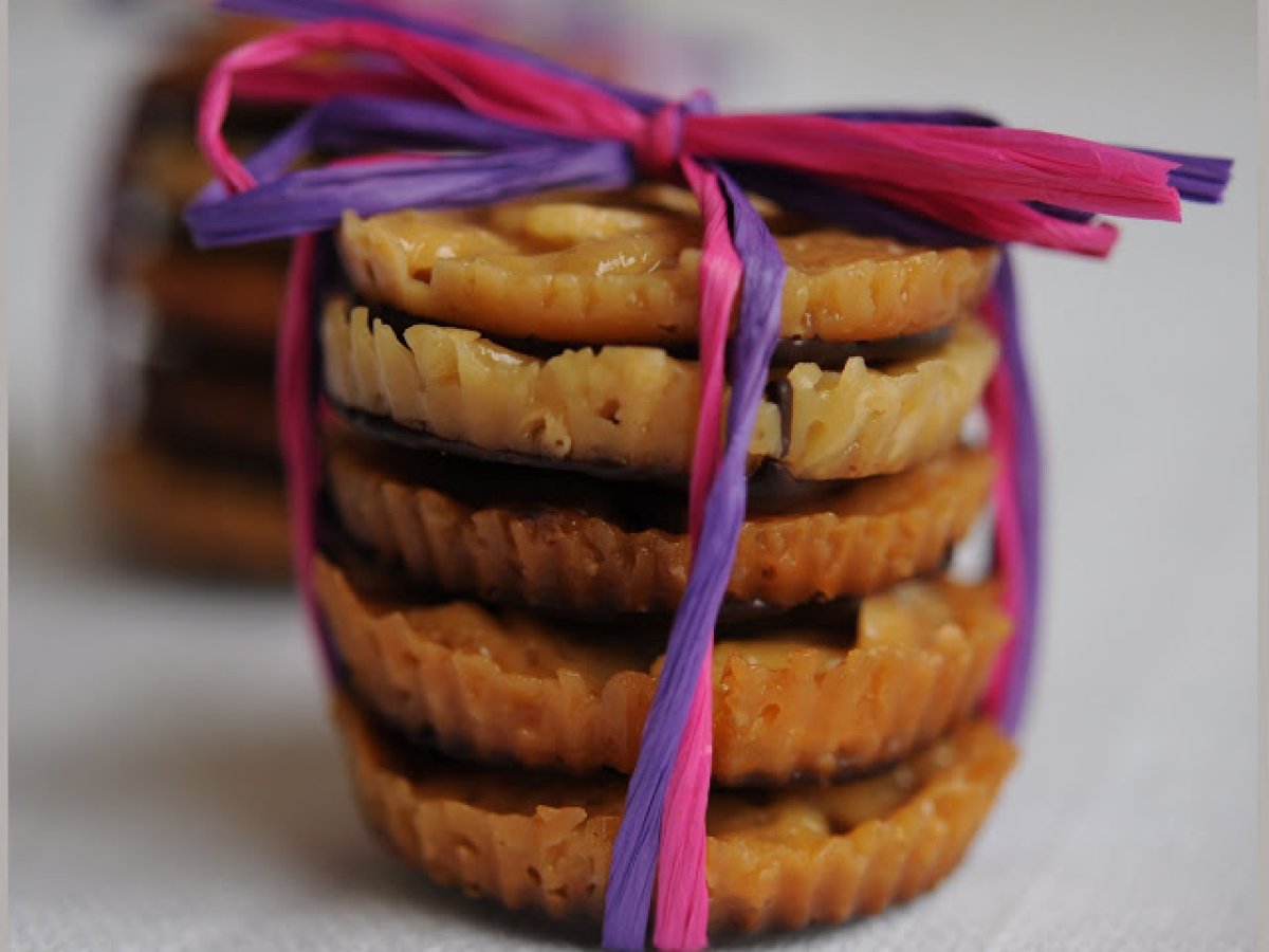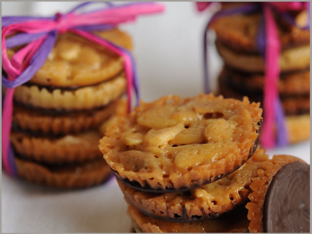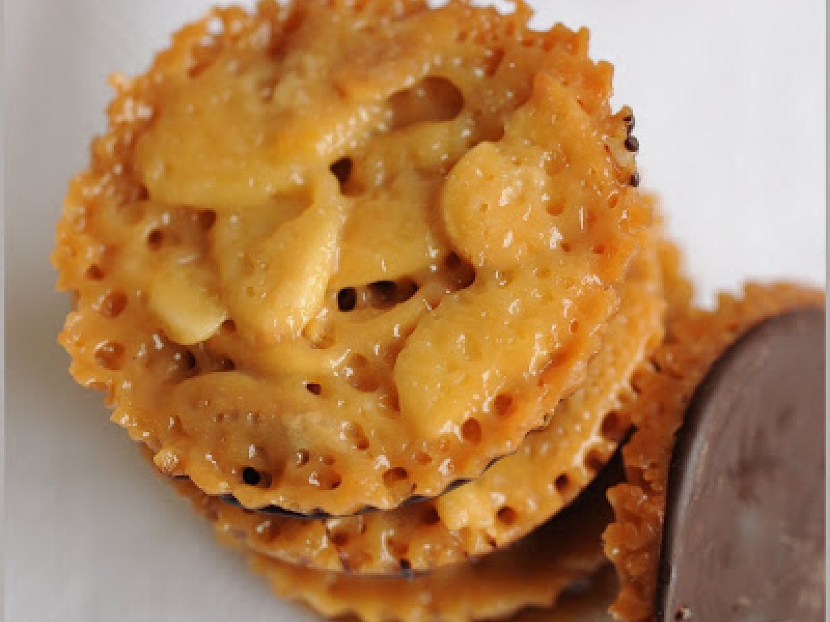 Florentinos de almendras AnteriorSiguiente AperitivoFácil30 min Enviar esta receta a un amigo Imprimir esta página Preguntar al autor Publicar la foto de esta receta Ingredientes 2 1 taza de almendras laminadas, levemente tostadas ½ taza + 2 cucharadas de crema ½ taza de azúcar granulada ¼ taza de azúcar rubia 2 cucharadas de mantequilla ¼ taza de harina 1 cucharada de ralladura de naranja 2 cucharaditas de ralladura de limón 300 g de chocolate amargo o bitter