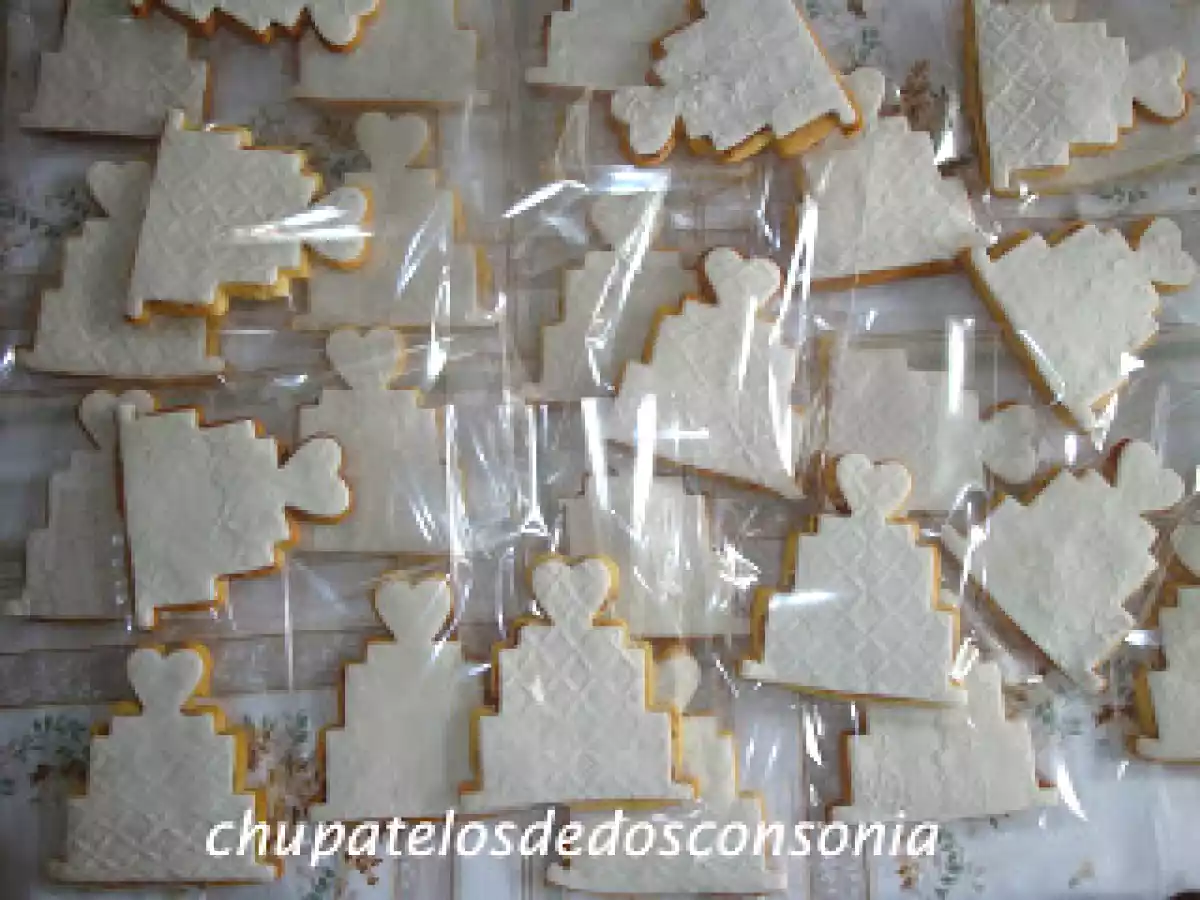 Galletas decoradas para un aniversario de bodas AnteriorSiguiente AperitivoFácil30 min2797 Kcal Enviar esta receta a un amigo Imprimir esta página Preguntar al autor Publicar la foto de esta receta Ingredientes 2 350 g de mantequilla 500 g de harina 4 yemas de huevo 250 g de azúcar 10 g de sal 1 cucharada de esencia de vainilla Costo estimado: 3.73Euros€ (1.87€/porción)