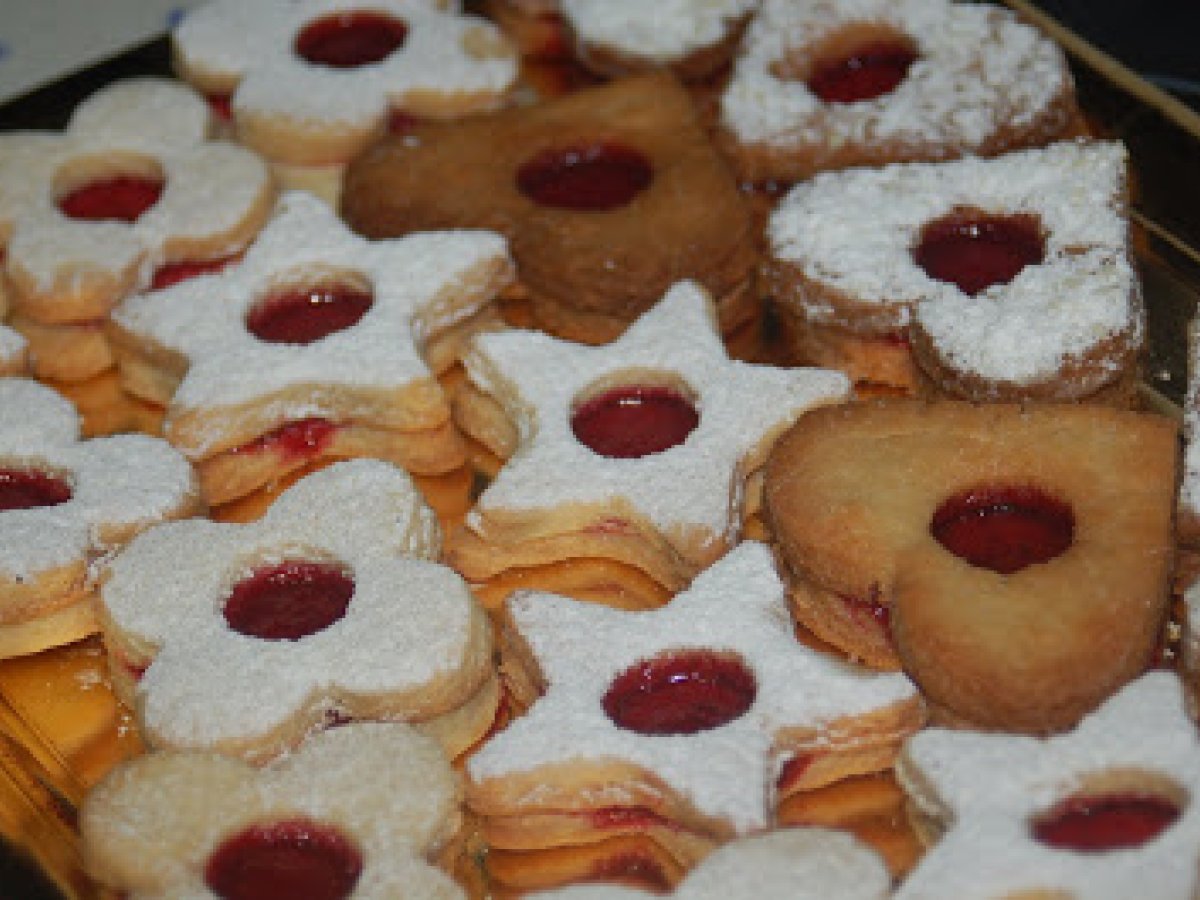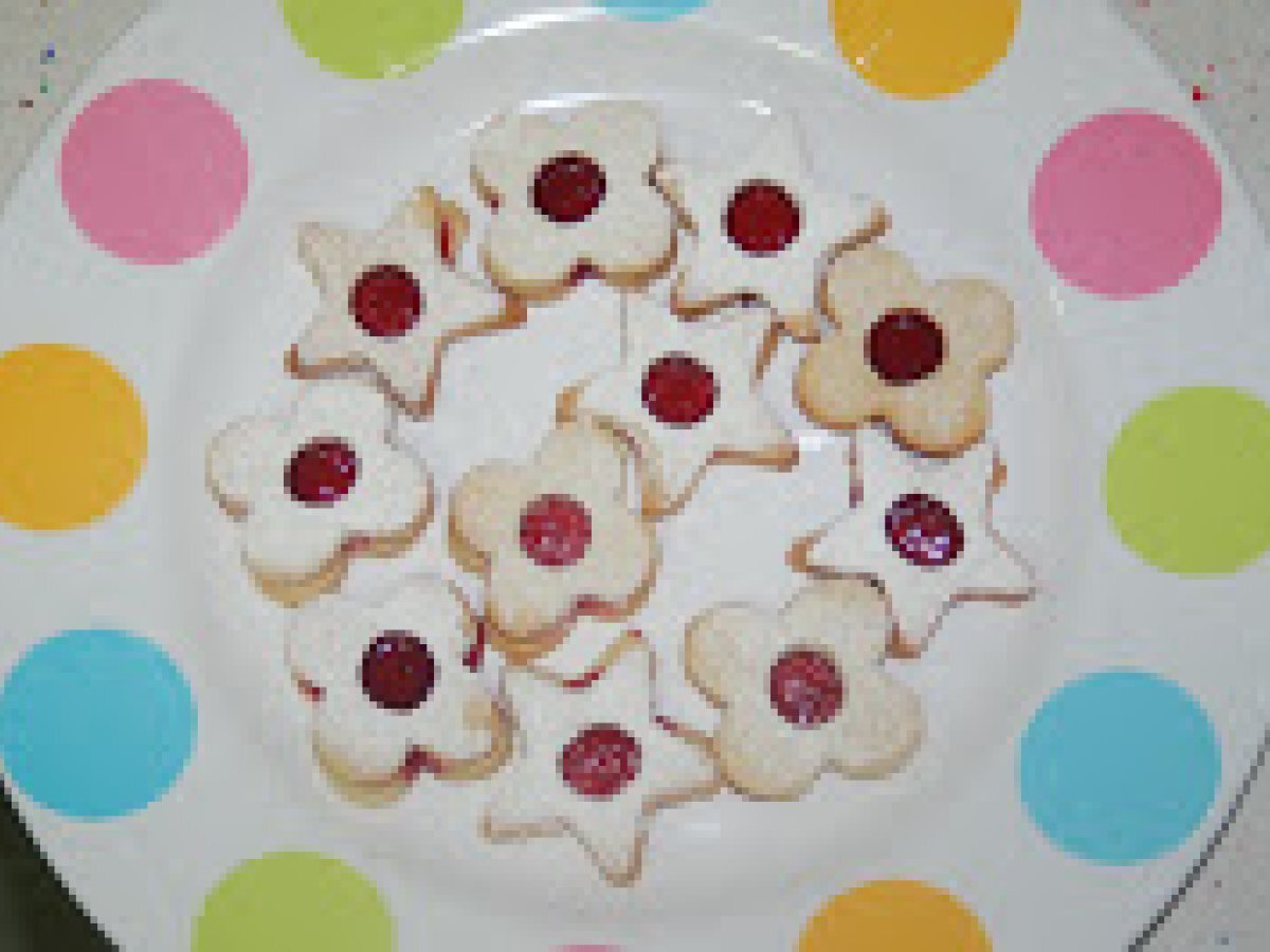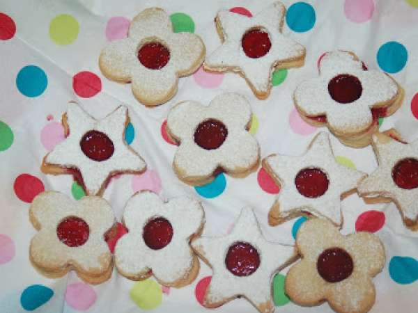 Galletas rellenas de mermelada de frutos rojos AnteriorSiguiente AperitivoFácil27 min Enviar esta receta a un amigo Imprimir esta página Preguntar al autor Publicar la foto de esta receta Ingredientes 4 350 g de harina, 125 g de margarina, una cucharada de zumo de limón, una pizca de sal, una clara de huevo, dos cucharadas de azúcar glas, una tacita de mermelada de frutos rojos (casera, puedes pinchar en la mermelada y verás la receta), Media cucharadita de las de café de pasta de vainilla.