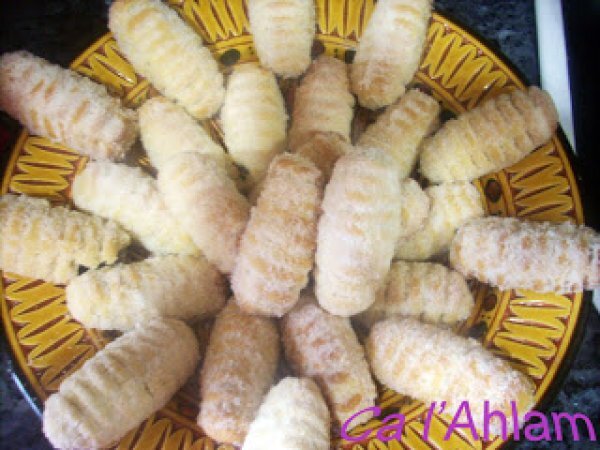 Halwa tmar (pastitas de dátil) AnteriorSiguiente AperitivoMedio1 h 10 m Enviar esta receta a un amigo Imprimir esta página Preguntar al autor Publicar la foto de esta receta Ingredientes 12 500 g de mantequilla 6 cucharadas de aceite de girasol 6 cucharadas de azúcar 6 cucharadas de agua de azahar 1/2 sobre de levadura en polvo 1 kg de harina 500 g de dátiles o de pasta de dátil 1 cucharadita de clavo 2 cucharaditas de canela 1 cucharadita de nuez moscada 2 cucharadas soperas de agua de azahar azúcar glacée para decorar pincitas para hacer pastas con bordes en forma de sierra