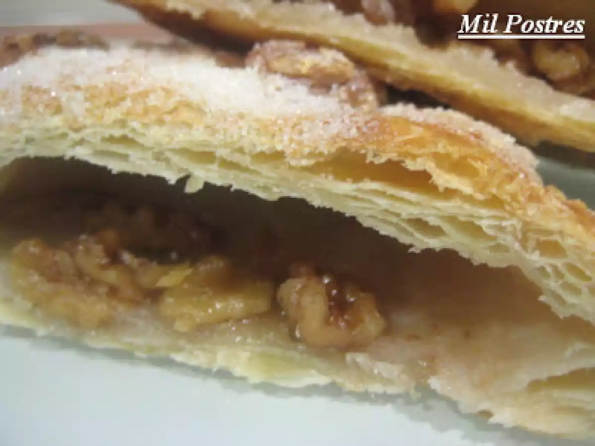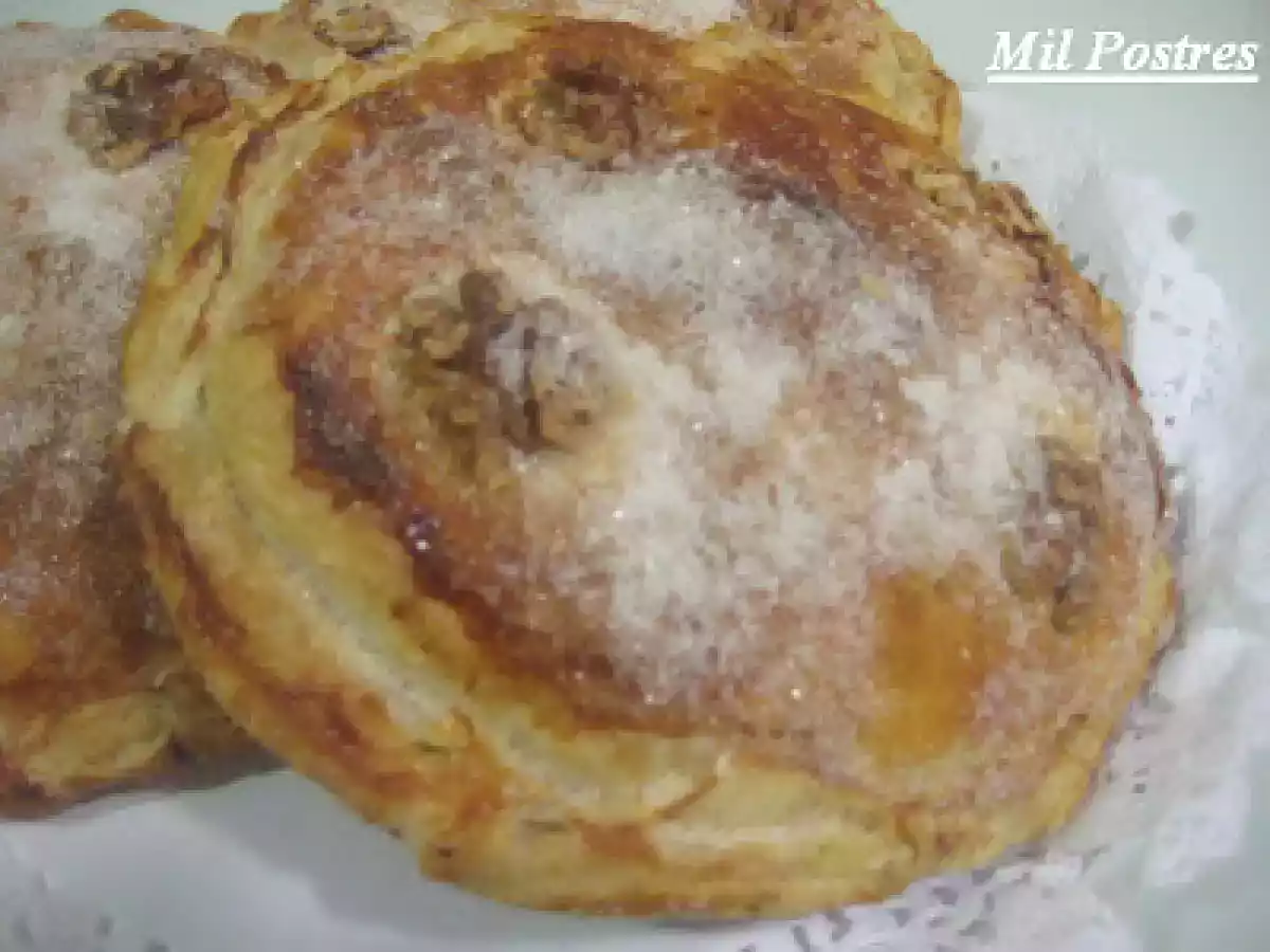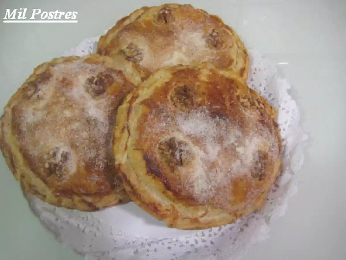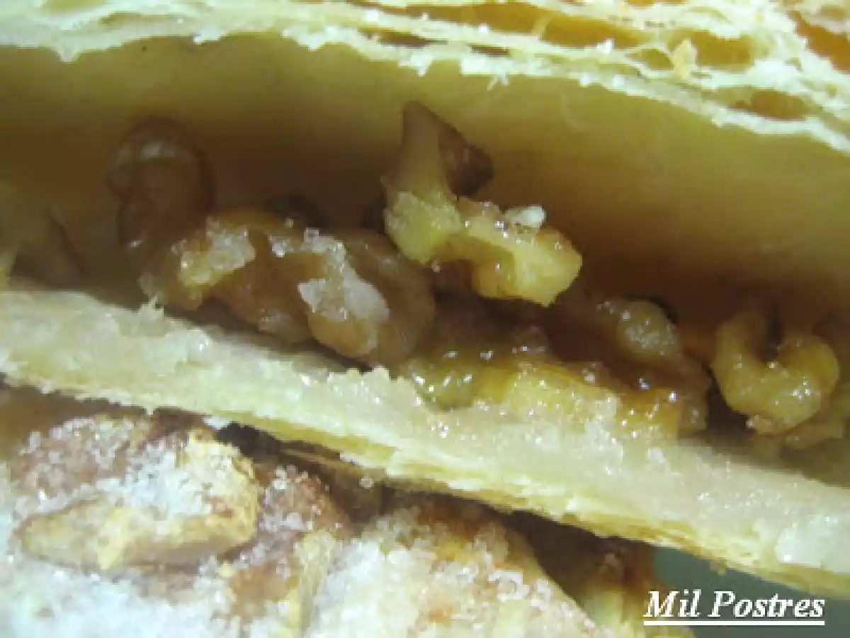 Hemc 43. nueces: tortas de hojaldre y nueces AnteriorSiguiente AperitivoFácil50 min844 Kcal Enviar esta receta a un amigo Imprimir esta página Preguntar al autor Publicar la foto de esta receta Ingredientes 6 500 gr. de masa de hojadre estirada 200 gr. de nueces 125 gr. de azúcar + la necesaria para salpicar al final 75 gr. de mantequilla 1 cucharadita de canela molida huevo batido para pincelar al final Costo estimado: 8Euros€ (1.33€/porción)