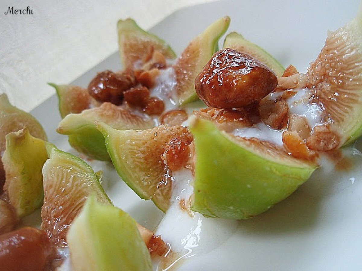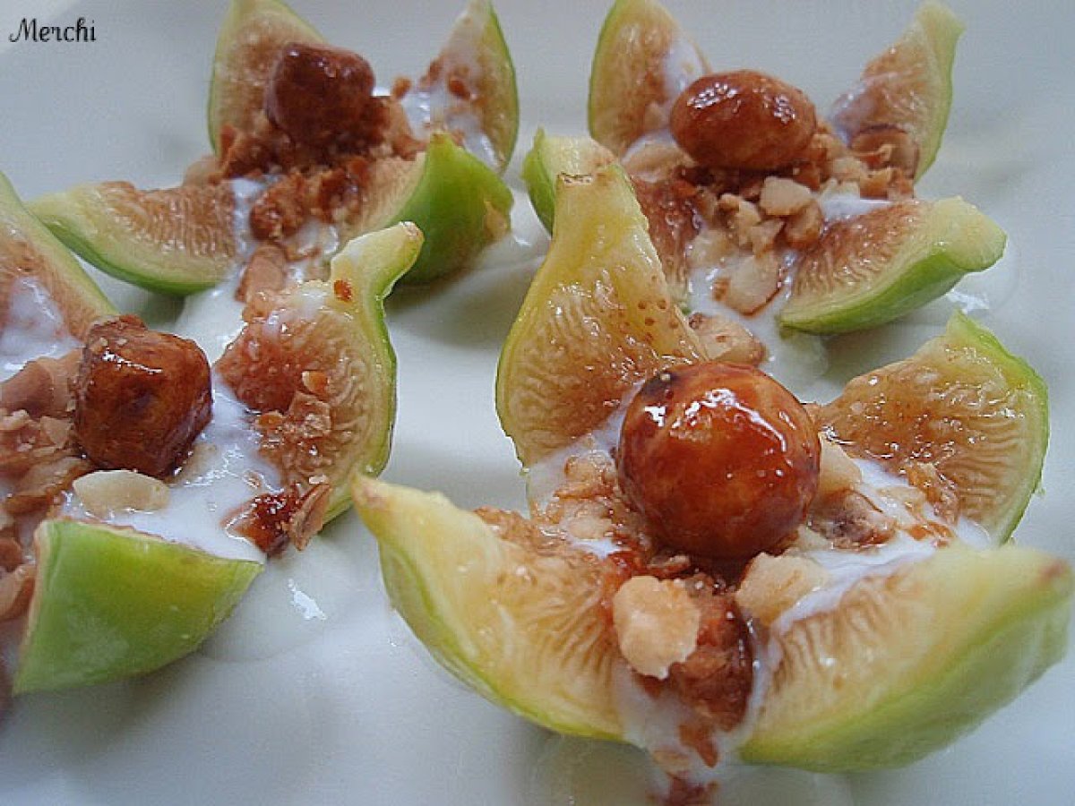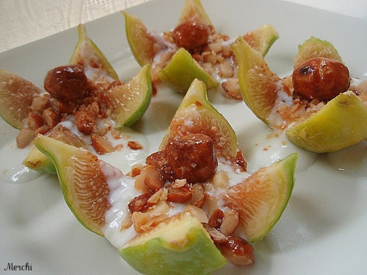 Higos verdes rellenos AnteriorSiguiente AperitivoFácil15 min302 Kcal Enviar esta receta a un amigo Imprimir esta página Preguntar al autor Publicar la foto de esta receta Ingredientes 2 12 higos verdes. 2 yogures griegos. 3 cucharaditas de queso crema de untar. 1 cucharada de miel casera. Nueces de macadamia caramelizadas. Costo estimado: 3.94Euros€ (1.97€/porción)
