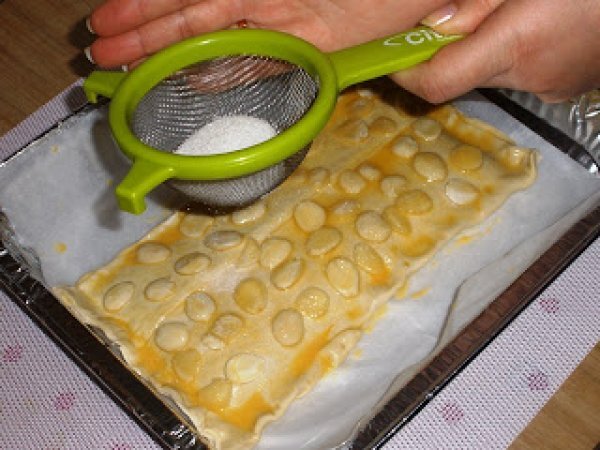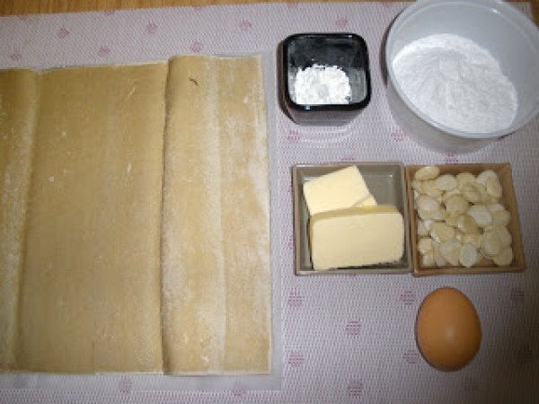 Hojaldre con crema de almendras AnteriorSiguiente AperitivoFácil30 min1128 Kcal Enviar esta receta a un amigo Imprimir esta página Preguntar al autor Publicar la foto de esta receta Ingredientes 2 60 g almendras molidas Almendras laminadas para decorar 60 g azúcar glass 8 g maizena 45 g mantequilla a temperatura ambiente 1 huevo 1 lámina hojaldre Azúcar para espolvorear Costo estimado: 2.91Euros€ (1.46€/porción)