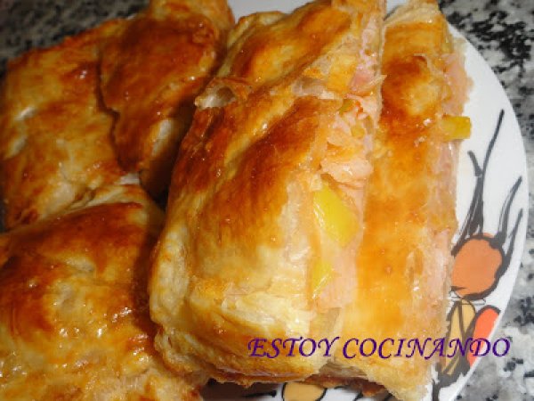 Hojaldres de puerro y jamón AnteriorSiguiente AperitivoFácil30 min1418 Kcal Enviar esta receta a un amigo Imprimir esta página Preguntar al autor Publicar la foto de esta receta Esta es una muy deliciosa receta. Ingredientes 2 una plancha de hojaldre 2 puerros 200 g de jamón de york salsa de tomate queso rallado un huevo batido para pintar el hojaldre Costo estimado: 6.3Euros€ (3.15€/porción)