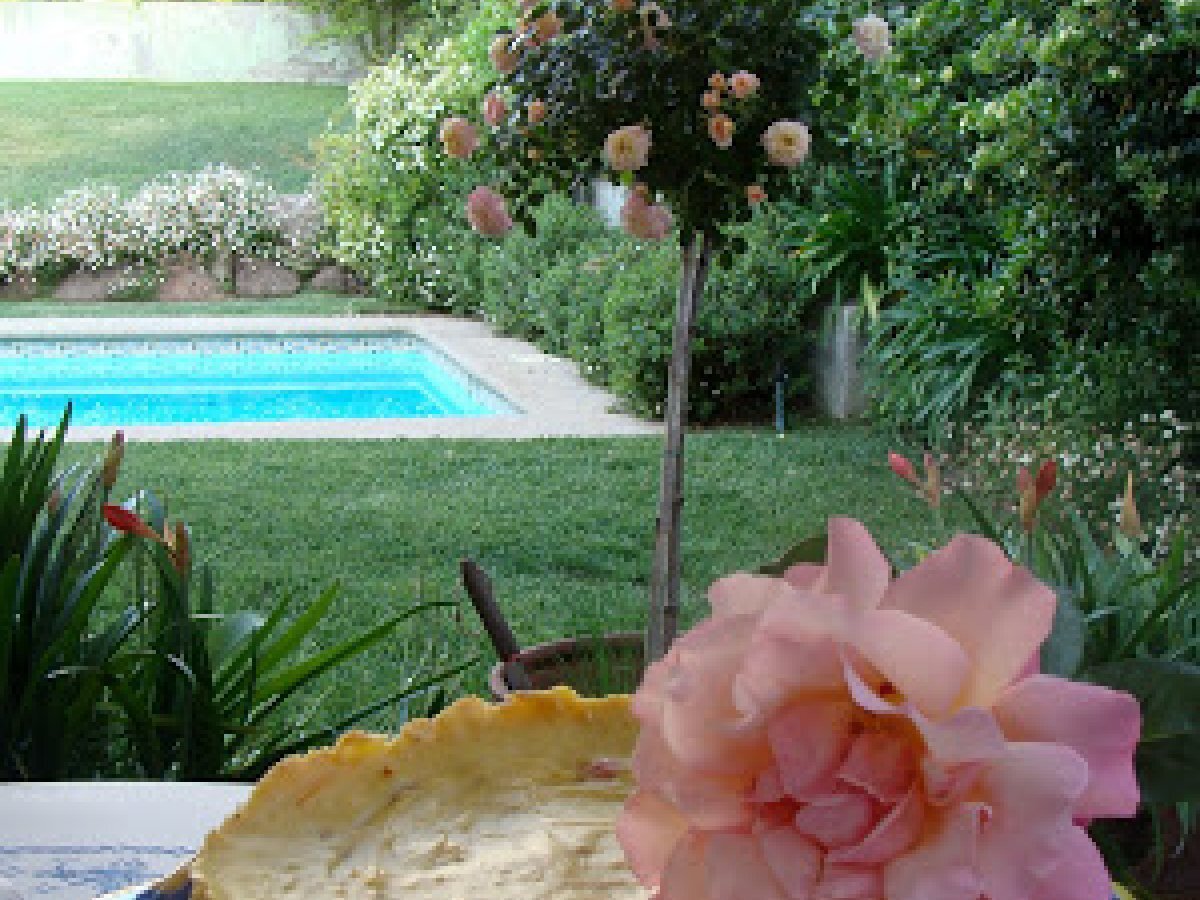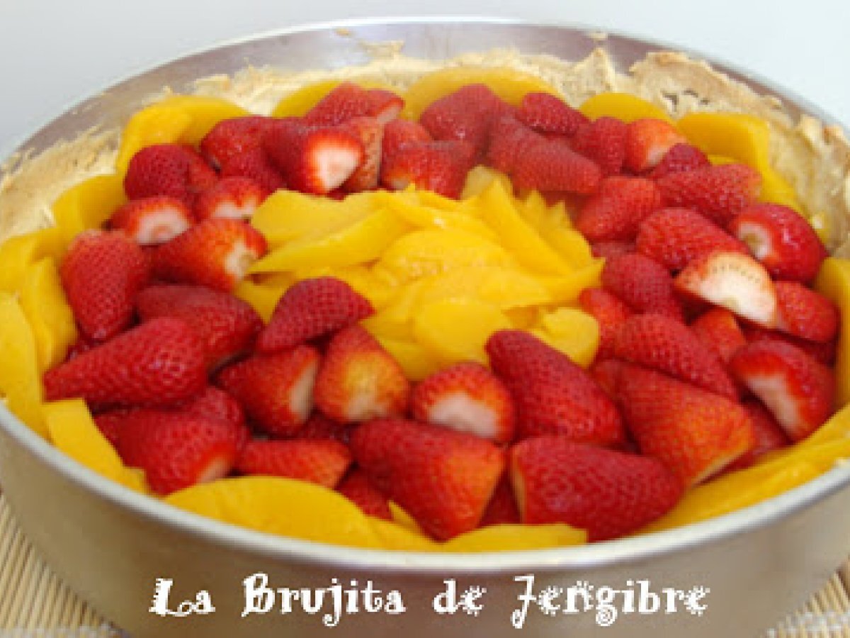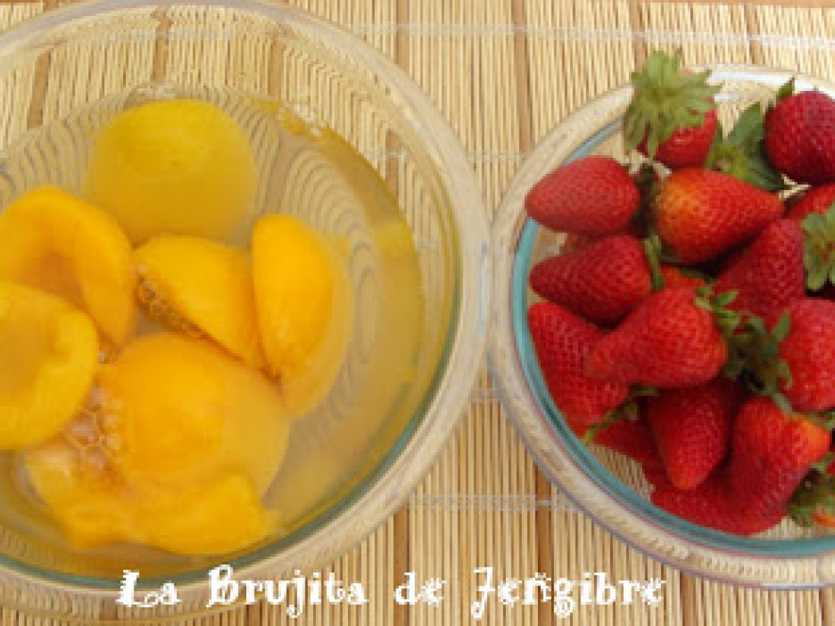 Kuchen aleman de frutillas o frambuesas y duraznos..