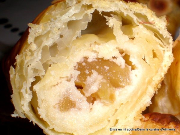 Mini strudel manzana-mazapan / mini strudel pomme-pâte d'amandes AnteriorSiguiente AperitivoFácil40 min1237 Kcal Enviar esta receta a un amigo Imprimir esta página Preguntar al autor Publicar la foto de esta receta Ingredientes 2 1 placa rectangular de masa de hojaldre (del Lidl para mi). 1 huevo. 2 manzanas 40 g de almendras laminadas. 200 g de mazapan.