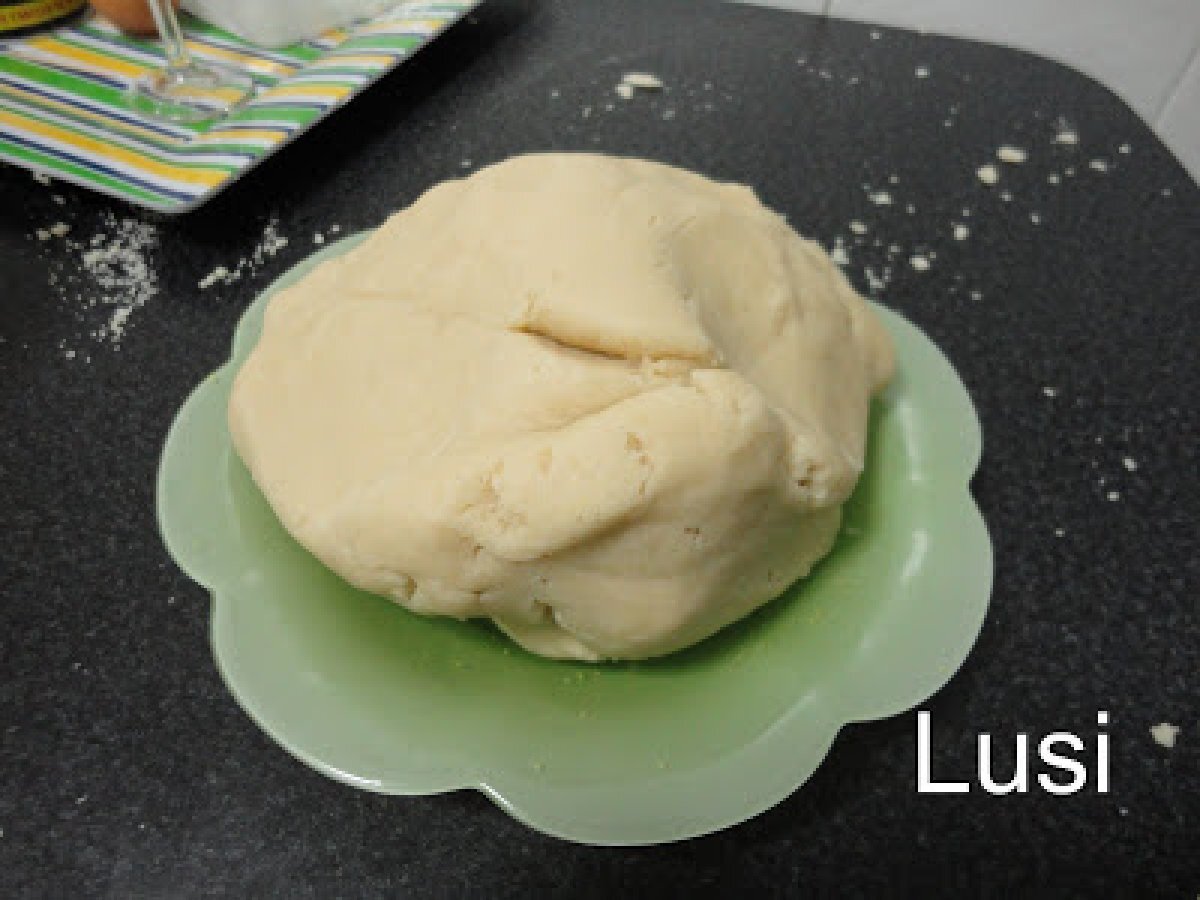 - Poner en un cuenco grande azúcar + ralladuras + manteca e ir mezclando. Agregar mistela + harina + bicarbonato. Trabajar la masa bien que quede todo integrado.