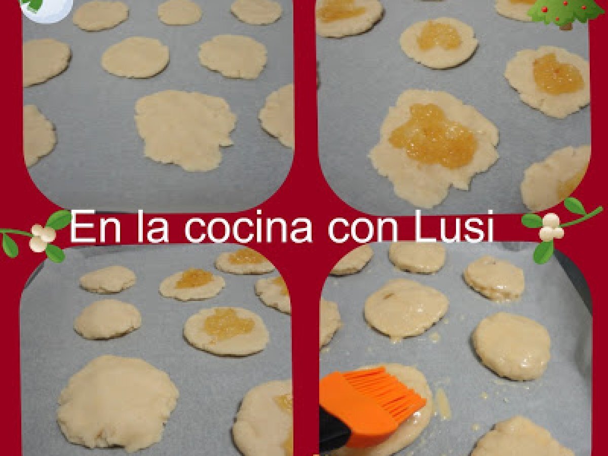 - Pincelar con huevo batido colocados en la bandeja del horno. Hornear 15 minutos ,precalentado a 200º,calor arriba y abajo + aire