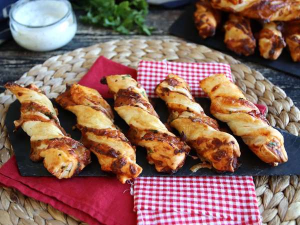 En Petitchef nos encanta usar masa de hojaldre en nuestros aperitivos: ¡así que hemos decidido doblar la apuesta para duplicar sabor y placer! La receta es sencilla y se prepara con pocos ingredientes. En esta versión hemos combinado: jamón serrano, salsa de tomate frito y mozzarella (en el apartado de consejos, al final de la página, te damos muchísimas otras ideas para el relleno). Los palitos de hojaldre son perfectos para un picoteo rápido y sabroso pero también para servir en un buffet o un catering. Descubre cómo hacerlos con nuestra receta explicada paso a paso ↓