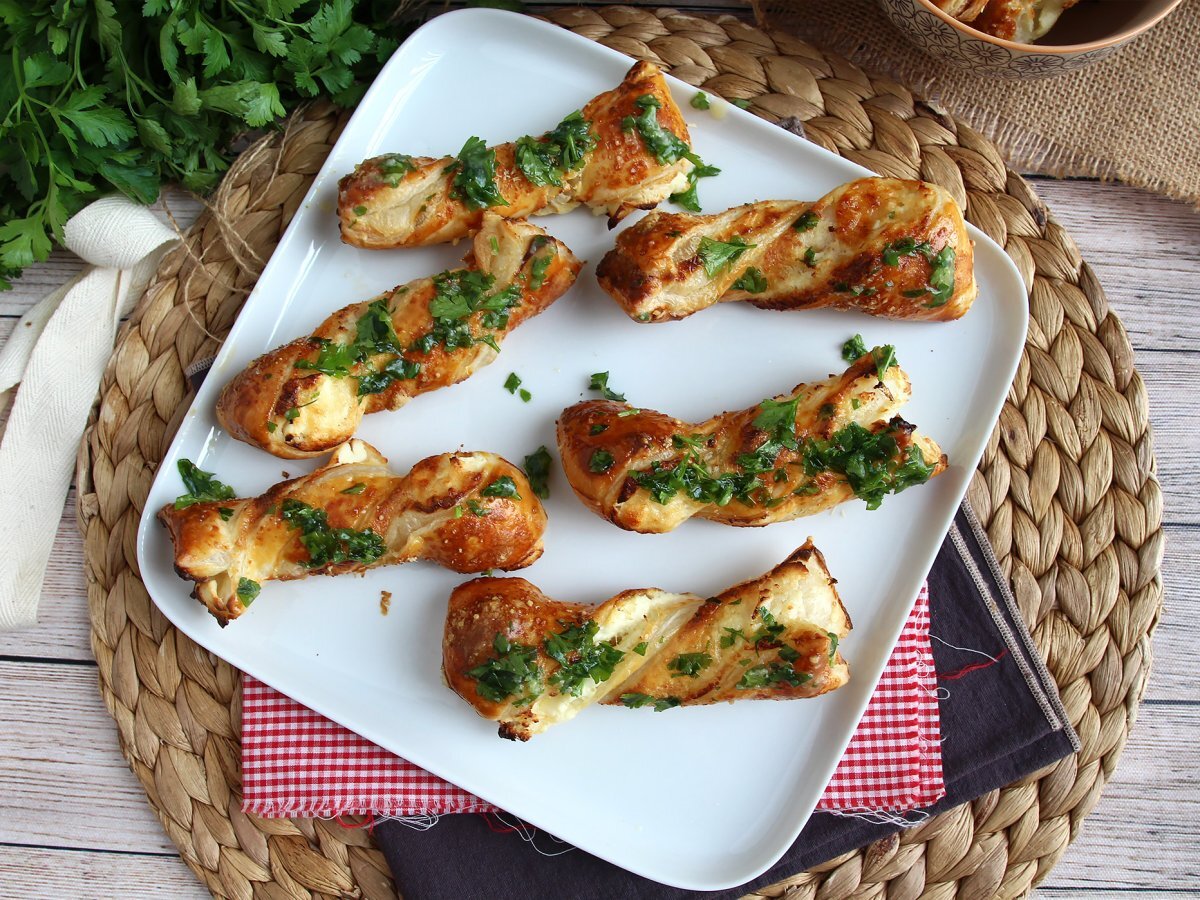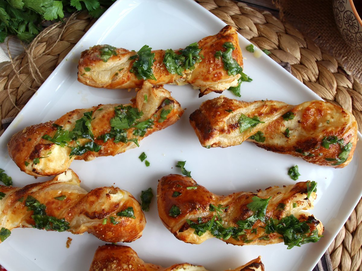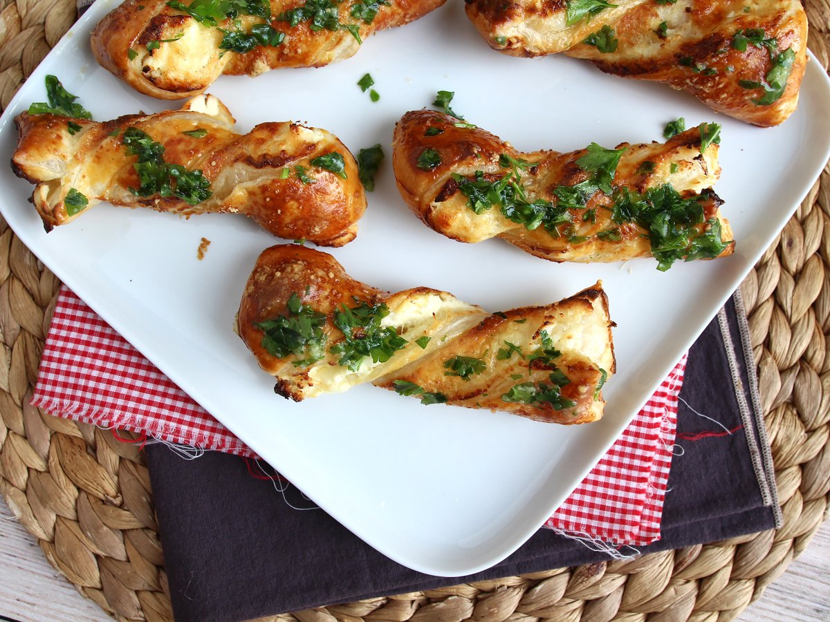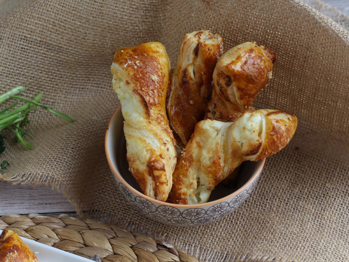 Palitos de hojaldre con queso y persillade, ideales para el aperitivo