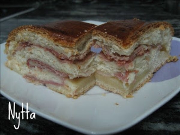 Pan brioche relleno de jamón y queso AnteriorSiguiente AperitivoFácil45 min Enviar esta receta a un amigo Imprimir esta página Preguntar al autor Publicar la foto de esta receta ¡Un aperitivo de reputación! Ingredientes 4 250 g de leche 50 g de mantequilla 50 g de azúcar 30 g de levadura fresca 1 cucharadita de sal 500 g de harina de trigo lonchas de jamón de York lonchas de jamón serrano finitas lonchas de queso Mantequilla blandita para pintar la masa por dentro Huevo batido para pintar la barra antes de hornear