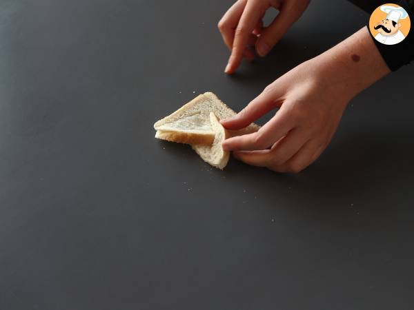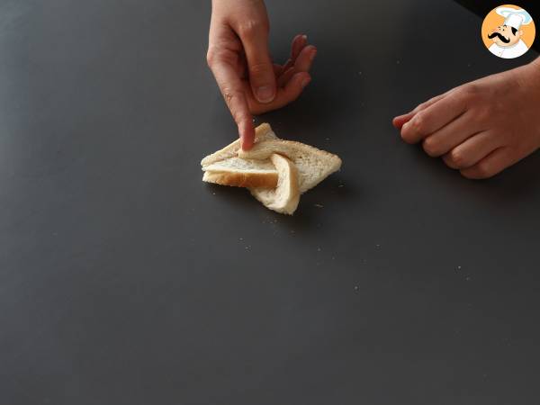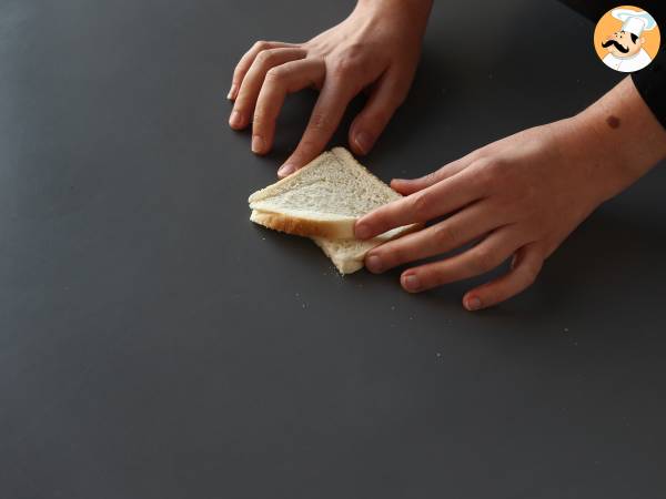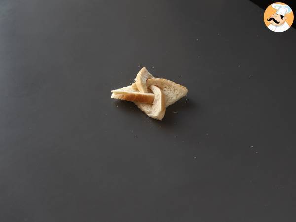 Haz lo mismo en cada una de las cuatro esquinas de la rebanada de pan.