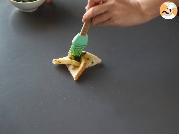 Con la ayuda de un pincel de cocina, embadurnamos cada estrella con el aderezo de aceite y perejil.
