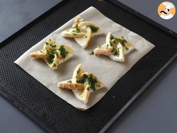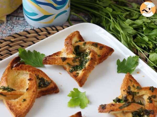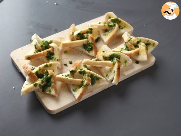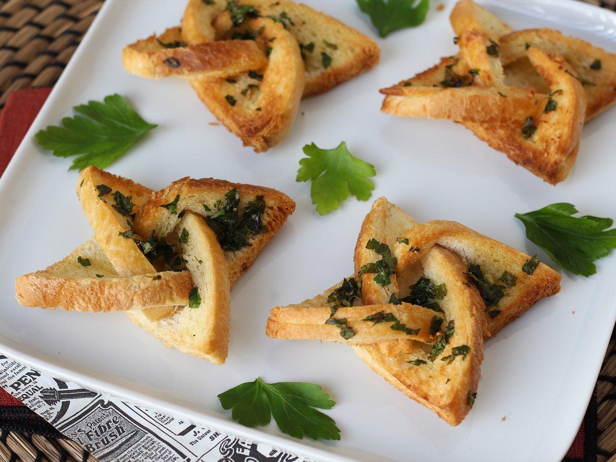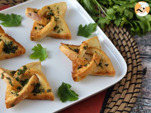 El pan de ajo es una receta ultrasencilla que siempre es un éxito a la hora del picoteo. Con unos pocos ingredientes, que todos solemos tener por casa, podemos hacer estos bocados tan originales, perfectos para un aperitivo festivo. En esta receta nos serviremos de rebanadas de pan de molde que, gracias a su textura blandita y maleable, nos permite hacer originales formas. Luego, lo aromatizaremos con aceite de oliva, ajo y perejil y tras un rápido horneado nos quedará un aperitivo crujiente, sabroso y muy estético.