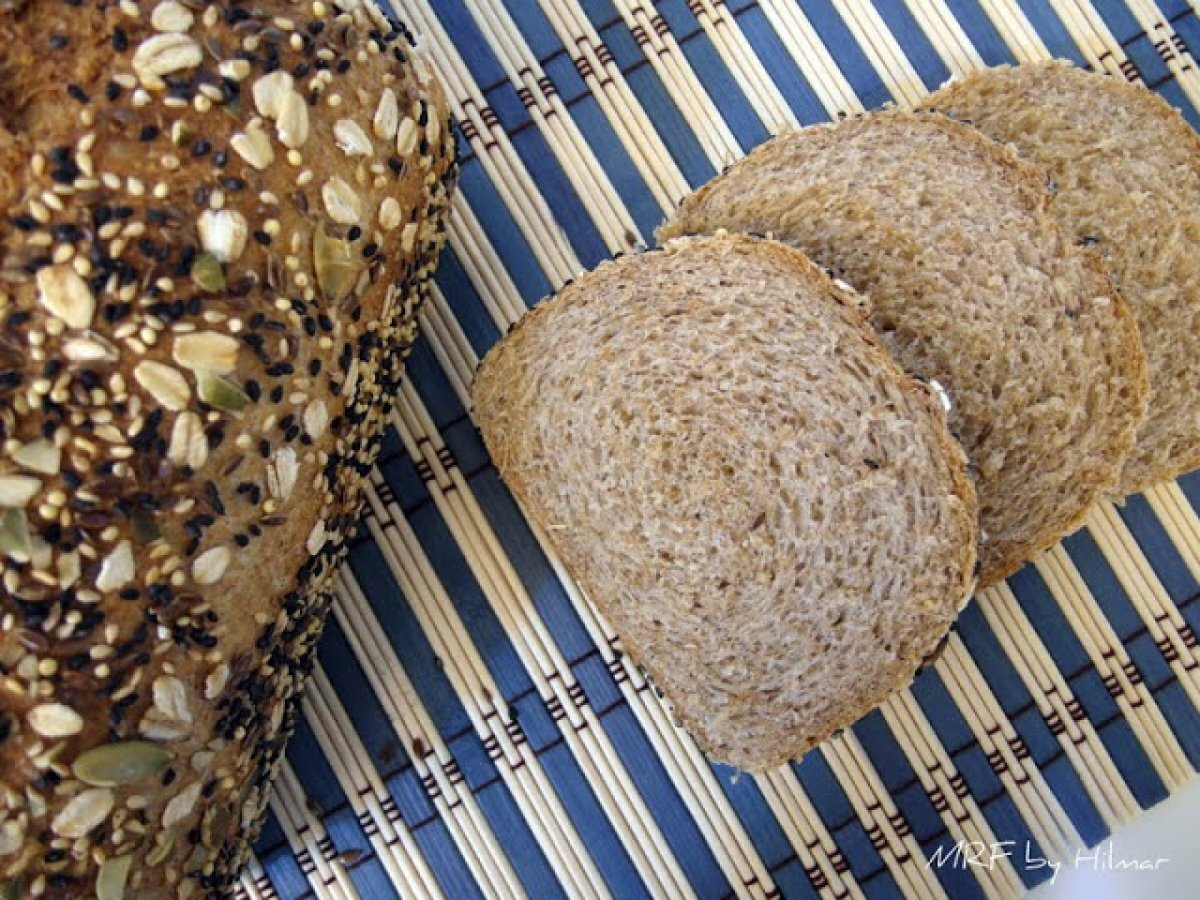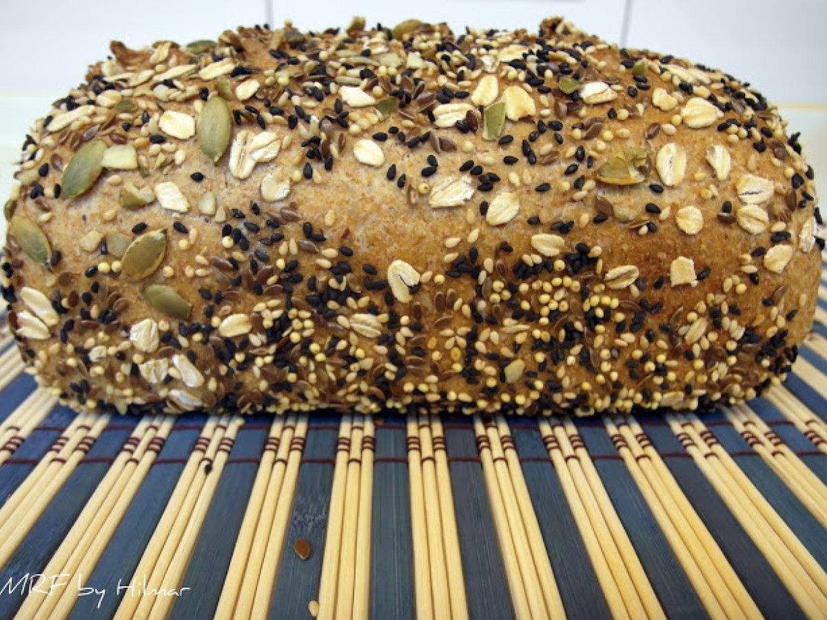 Pan integral con miel, linaza y otras semillas AnteriorSiguiente AperitivoFácil1 h 10 m641 Kcal Enviar esta receta a un amigo Imprimir esta página Preguntar al autor Publicar la foto de esta receta Ingredientes 4 500 g de harina de trigo integral (Substituí 100 g por harina diez cereales) 80 g de harina panadera o de fuerza 280 g de agua (Un poquitín más si usa la linaza molida) 100 g masa madre (receta original no lleva) 4 g levadura seca instantánea 10 g de sal 12 g de melaza (receta original azúcar morena) 40 g de miel 20 g de linaza molida (receta original linaza tostada)