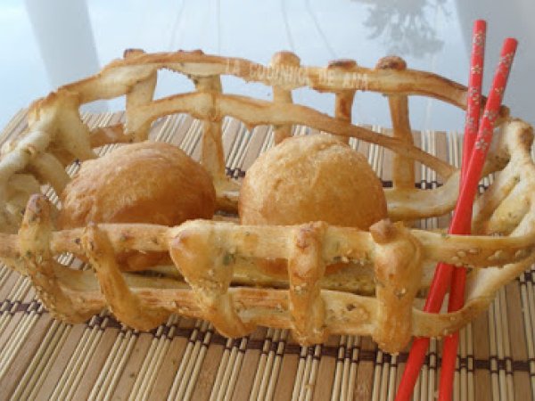 - Retirar la masa del vaso y estirarla hasta que quede de 1 cm. de grosor más o menos, taparla con un plástico y dejar reposar 10 minutos. Transcurrido el tiempo de reposo cortar tiras del largo deseado y hacerlos rodar por la mesa enharinada para que tomen forma redondeada y usando un molde, según la forma que queramos darle a nuestra panera, forraremos con papel vegetal y colocaremos las tiras entrelazandolas y pincelamos pincelarlos.