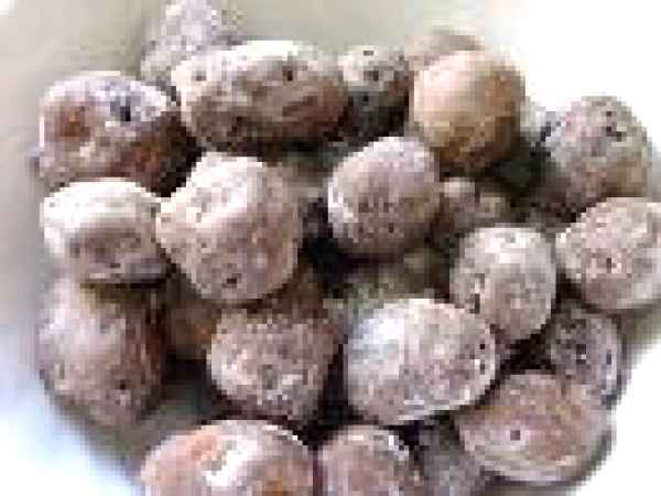 - Lavar bien las papas y ponerlas en un caldero.Cubrirlas con agua y ponerles sal. (La cantidad de sal es hasta la cuarta parte del peso de las papas).Se llevan al fuego y se dejan hervir lentamente durante veinte o treinta minutos.