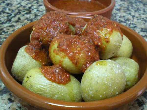 - Para saber si ya están cocinadas se pueden pinchar con un tenedor.Una vez cocinadas se escurre el agua y se lleva otra vez al fuego, removiendo para que no se quemen, para que terminen de arrugarse.Se pueden acompañar con mojo picón, mojo verde o rojo, con carnes y pescados.