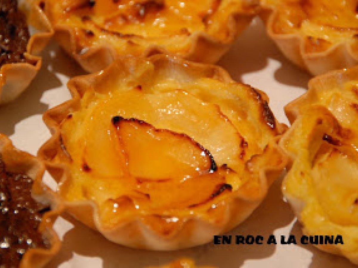 Pastissets de poma i crema vota ahora AperitivoFácil50 min Enviar esta receta a un amigo Imprimir esta página Preguntar al autor Publicar la foto de esta receta Ingredientes 8 1 paquet de "obleas la cocinera" mitja ( ingredients per 10 unitats ) 2 llimones ( el suc ) 2 pomes 250 grams de nata de cuina espessa 2 cullerades soperes de " maizena expres" 1 pessic de canyella 1 pessic de sucre de vainilla 1 pessic de sal sucre confitura d´albercoc