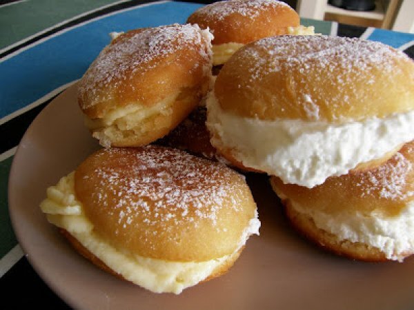 Pequeñas bombas de crema y nata. AnteriorSiguiente AperitivoMedio50 min364 Kcal Enviar esta receta a un amigo Imprimir esta página Preguntar al autor Publicar la foto de esta receta Ingredientes 4 125 g. de harina de trigo. 125 g. de harina de arroz. 20 g. de manteca de cerdo 1 pizca de sal. 50 g. de azúcar. 15 g. de levadura fresca. 1 huevo. 80 ml de leche. Esencias de vainilla y/o almendra. Costo estimado: 1.86Euros€ (0.46€/porción)