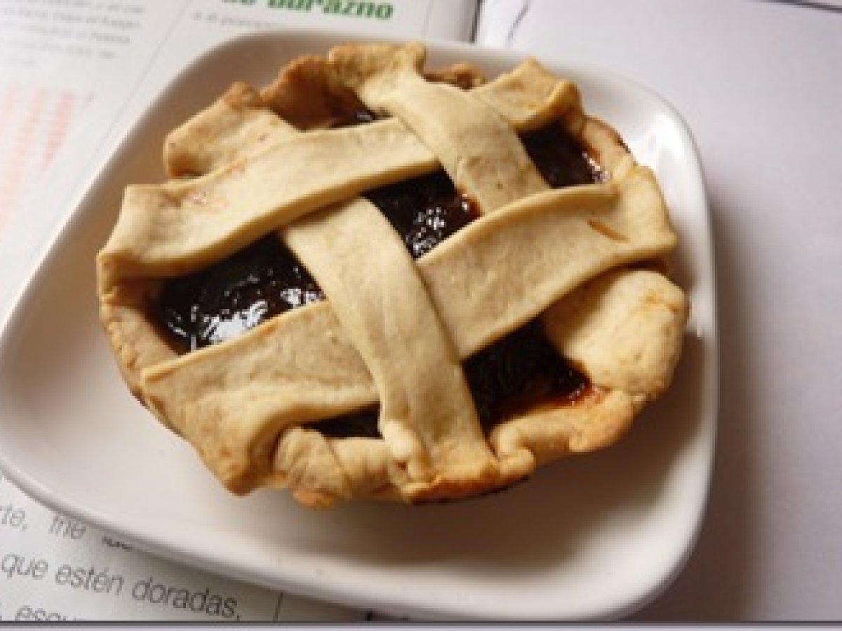 Pie de ciruela AnteriorSiguiente AperitivoFácil50 min596 Kcal Enviar esta receta a un amigo Imprimir esta página Preguntar al autor Publicar la foto de esta receta Ingredientes 2 Para el relleno: 12 Ciruela pasas sin semilla 1 cucharada de azúcar 1/2 taza de agua Para la masa: 2 1/2 taza de harina blanca todo uso 1 barra de mantequilla sin sal 1 huevo 2 cucharadas de polvo de hornear 2 cucharadas de azúcar glass o pulverizada 1 pizca de sal 5 cucharadas de agua Costo estimado: 1.04Euros€ (0.52€/porción)