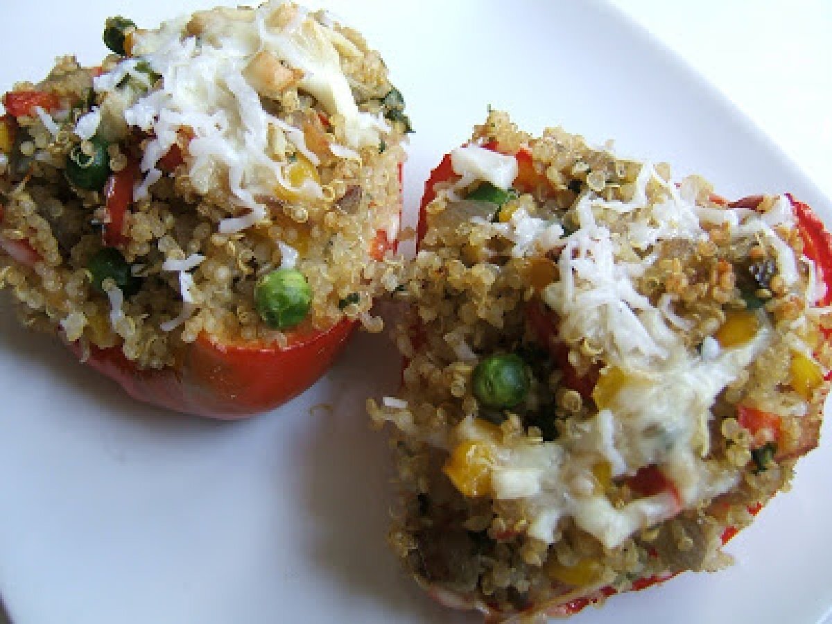 Pimientos calahorra rellenos con quinoa AnteriorSiguiente AperitivoFácil35 min693 Kcal Enviar esta receta a un amigo Imprimir esta página Preguntar al autor Publicar la foto de esta receta Ingredientes 1 1 taza de quinoa 2 tazas de agua 1 cebolla picada 1 diente de ajo aceite de oliva 1/2 taza de granos de choclo (maíz) 1/2 taza de arvejas Queso para poner arriba de los pimientos Costo estimado: 2.88Euros€ (2.88€/porción)