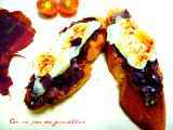 Pincho de morcilla de burgos con queso de cabra y patata cocida AperitivoFácil18 min948 Kcal Enviar esta receta a un amigo Imprimir esta página Preguntar al autor Publicar la foto de esta receta Ingredientes 1 1 morcilla de Burgos 1 patata grande 4 rodajas de queso rulo de cabra 4 huevos de codorniz aceite de oliva sal.