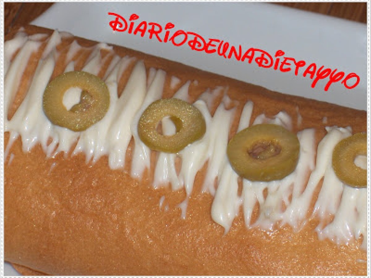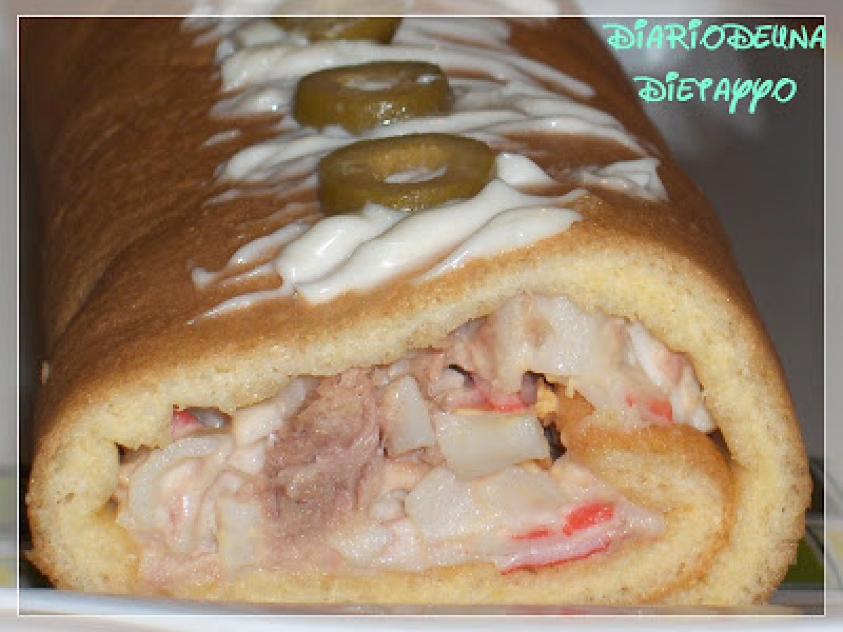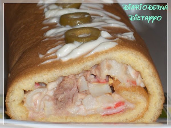 - Mientras se hace la masa, en un bol mezclamos los palitos de cangrejo troceaditos, el atún escurrido, los 2 huevos cocidos, las olivas troceadas y la mayonesa. Hacemos una mezcla uniforme y dejamos reposar.