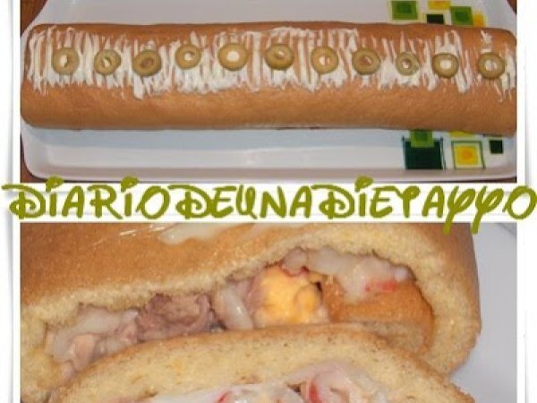 - Sacamos del horno la masa y la envolvemos en un trapo haciendo la forma del brazo y la dejamos reposar un ratito para que luego sea más fácil de rellenar.