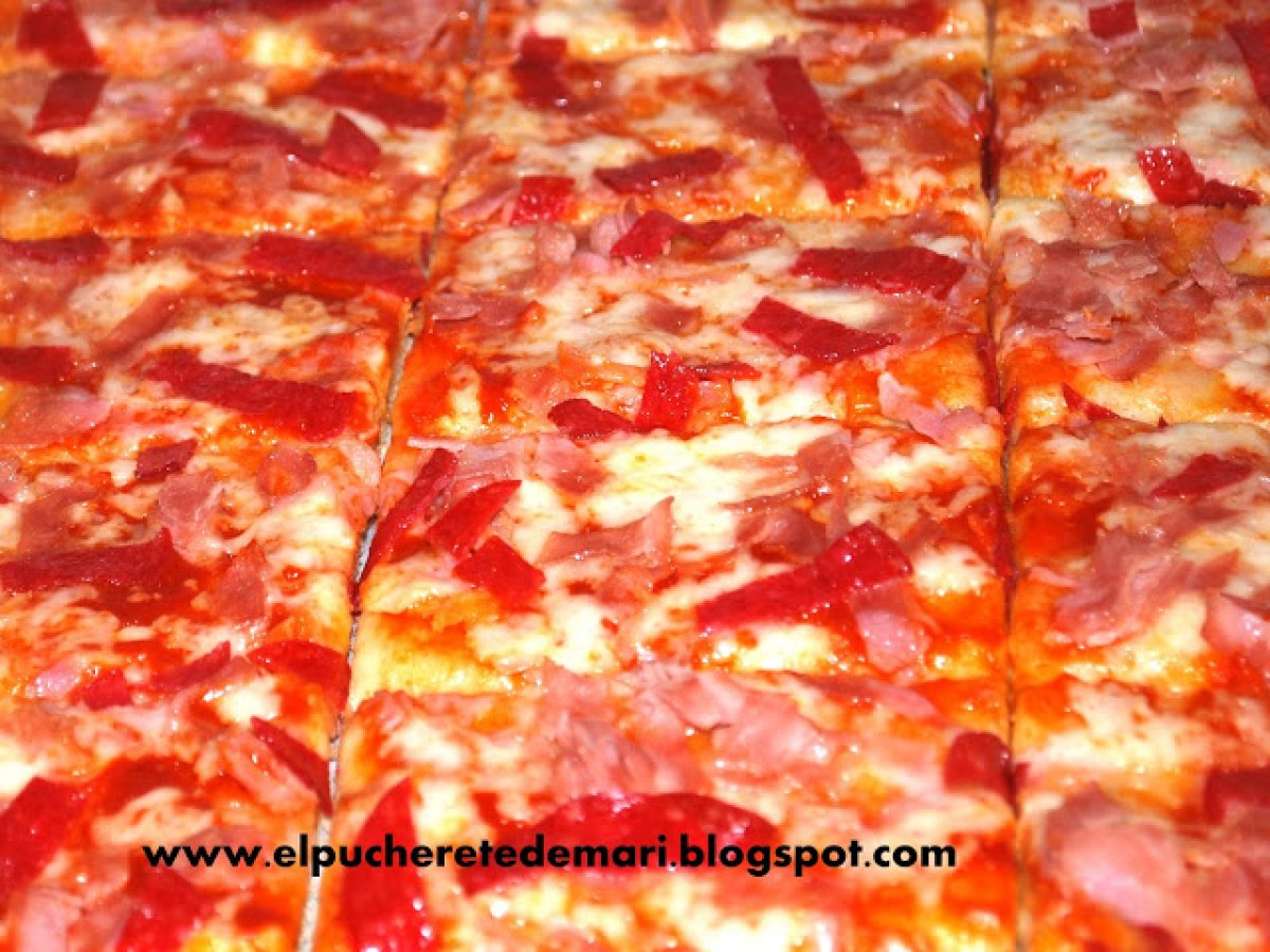 Pizza de salami AperitivoMedio1 h 25 m329 Kcal Enviar esta receta a un amigo Imprimir esta página Preguntar al autor Publicar la foto de esta receta Ingredientes 8 Para la masa: 350 g de harina de fuerza 1 cucharadita colmada de sal 15 g de levadura fresca 1 cucharadita de azúcar 200 ml de agua templada 1 cucharada sopera de aceite de oliva Para cubrir: Salsa de tomate 150 -200 g de queso rallado que funda 150 g de jamón york en tiritas finas 100 g de salami en tiritas finas Costo estimado: 15.31Euros€ (1.91€/porción)